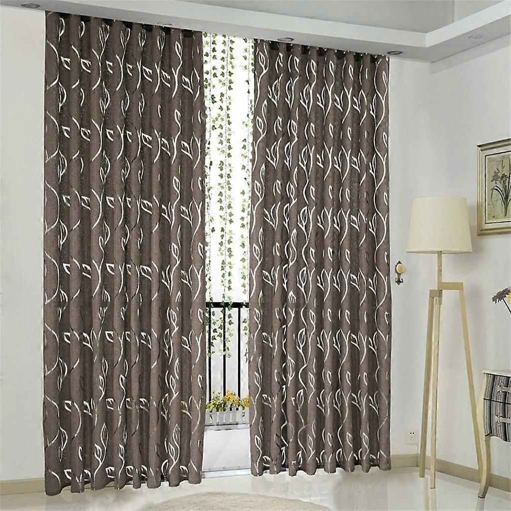 Puntoco Clearance 2 Pcs Vines Leaves Tulle Door Window Curtain Drape Panel Sheer Scarf Valances Coffee