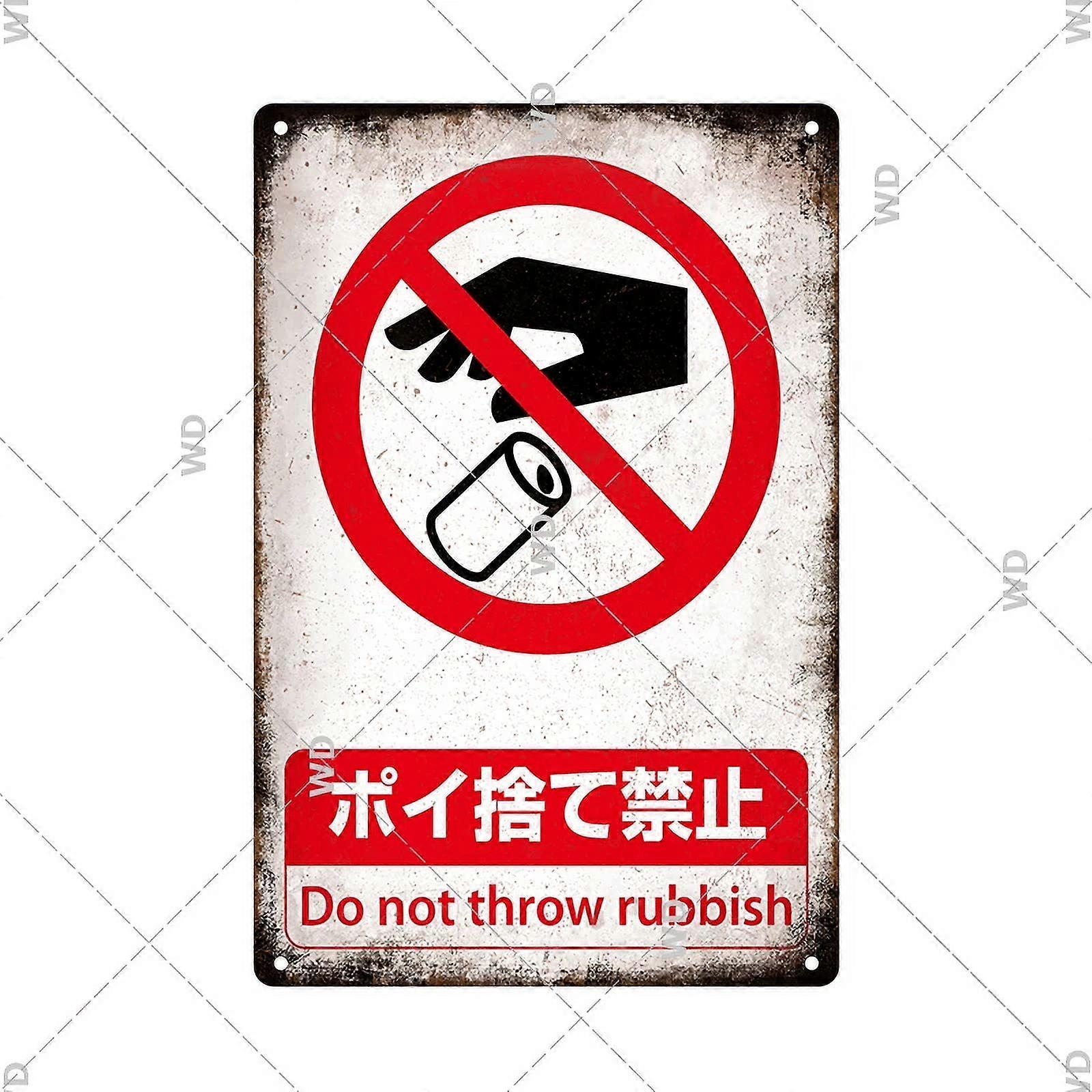 Japanese Language Style No Entry Warning Security Camera Tin Sign Metal Vintage Plaque Retro Metal Plate Door Yard Wall Decor