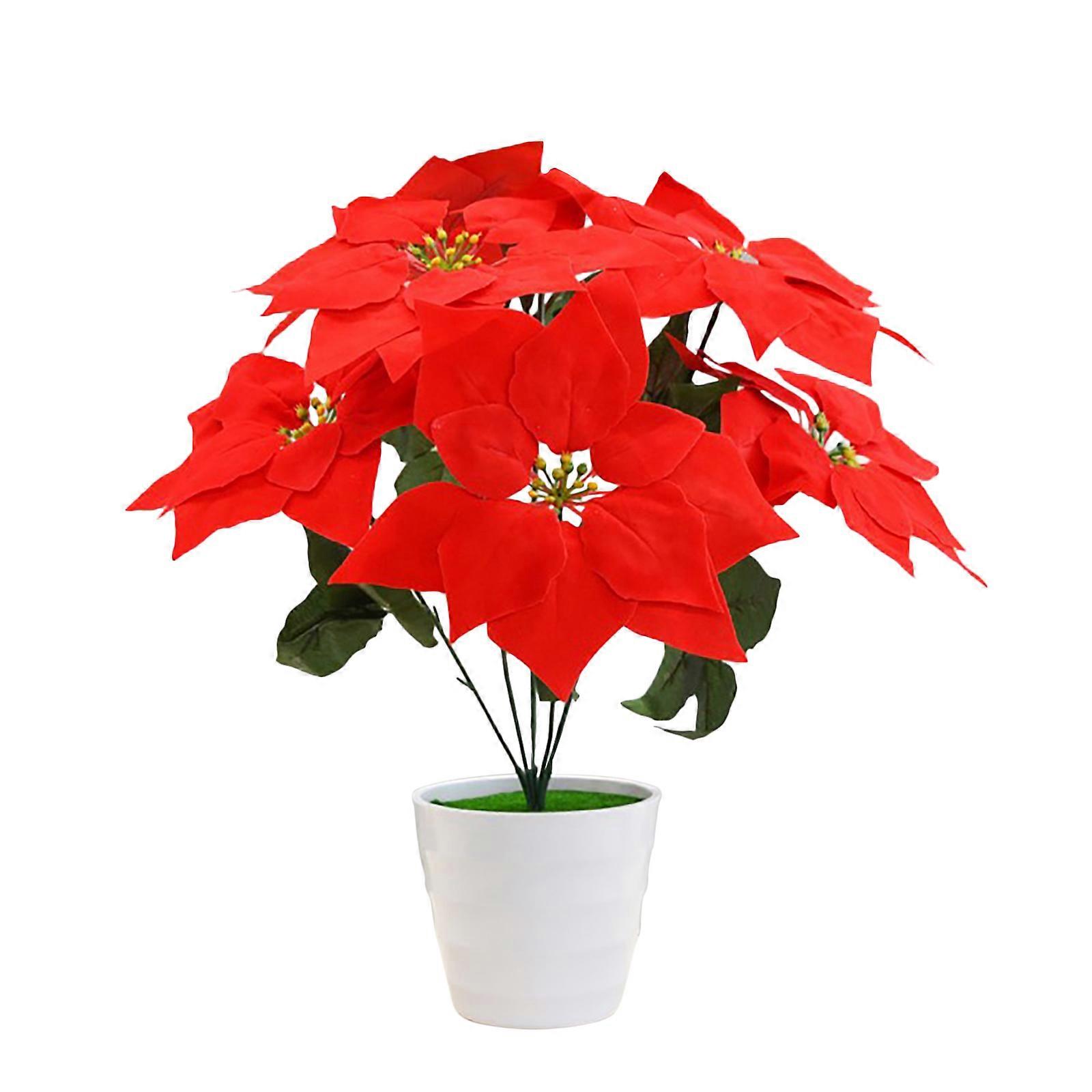 CreativeArrowy For Home Cristmas Ornament Xmas Pendant Fake Flowers Decorations Simulation Gift Red Artificial Poinsettia Bonsai