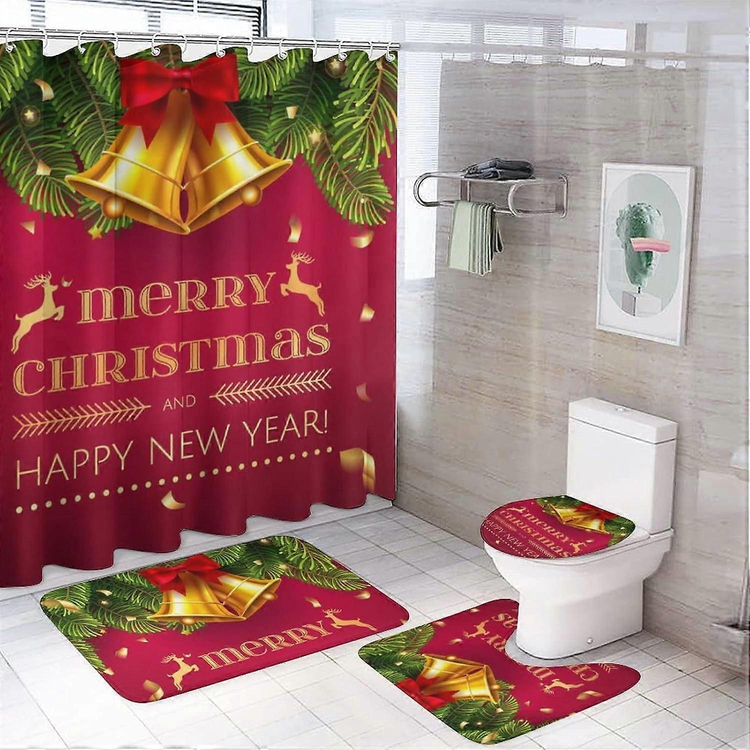 Christmas Snowflakes Shower Curtain Set of 4 PCS, compatible with Xmas Theme Snowman Bath Decor, Rug, Non-Slip Mats, Toilet Cover & Waterproof
