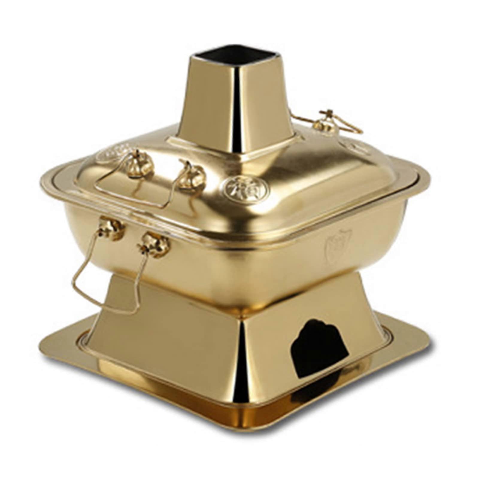 Chinese Copper Hot Pot 304 Stainless Steel Cooker With Chimney For Home Restaurant Party Gold 34cm 3 Colors Available