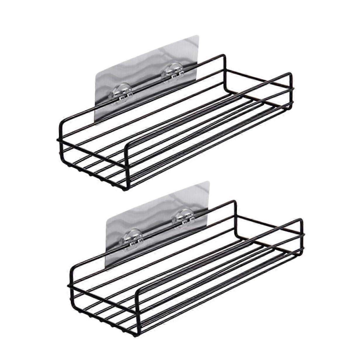 WallMounted Iron Storage Shelves 2Piece Black Corner Racks for Bathroom and Kitchen SelfAdhesive SpaceSaving Organizers
