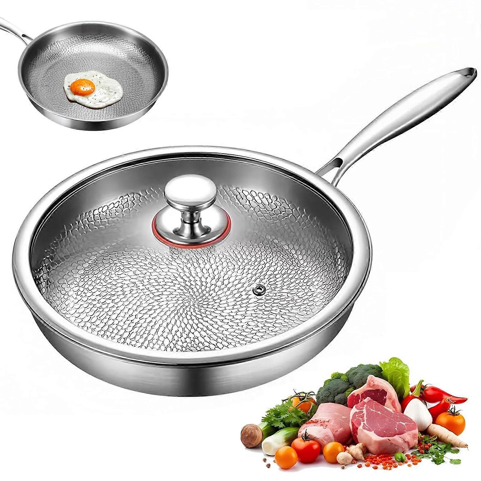 Titanium Hammered Pan Pro with Lid Built to Last a Lifetime: Made from pure titanium metal for corrosion resistance and durability. This pan avoids the common wear of traditional cookware and delivers longterm performance without degrading. Heats Fast, Cooks Evenly: The threelayer construction ensures rapid heating and uniform heat distribution, helping you reach and hold the right temperature every time. Works on All Stovetops: The titanium hammered pan pro with lid fits gas and induction cooktops and is ovensafe up to 500°F. Five versatile sizes are available to meet all your cooking needs. Healthier LowOil Cooking: The nonstick surface requires little to no oil, promoting healthier meals without sacrificing flavor. Cleanup is quick and effortless. Use scenarios: Sear fish or steak with minimal oil, then finish in the oven for a crust and tender interior. Sauté vegetables or stirfry on induction or gas with steady, even heat and easy food release. Cook eggs, pancakes, or delicate sauces with minimal oil, then clean up quickly for a fast weeknight meal.