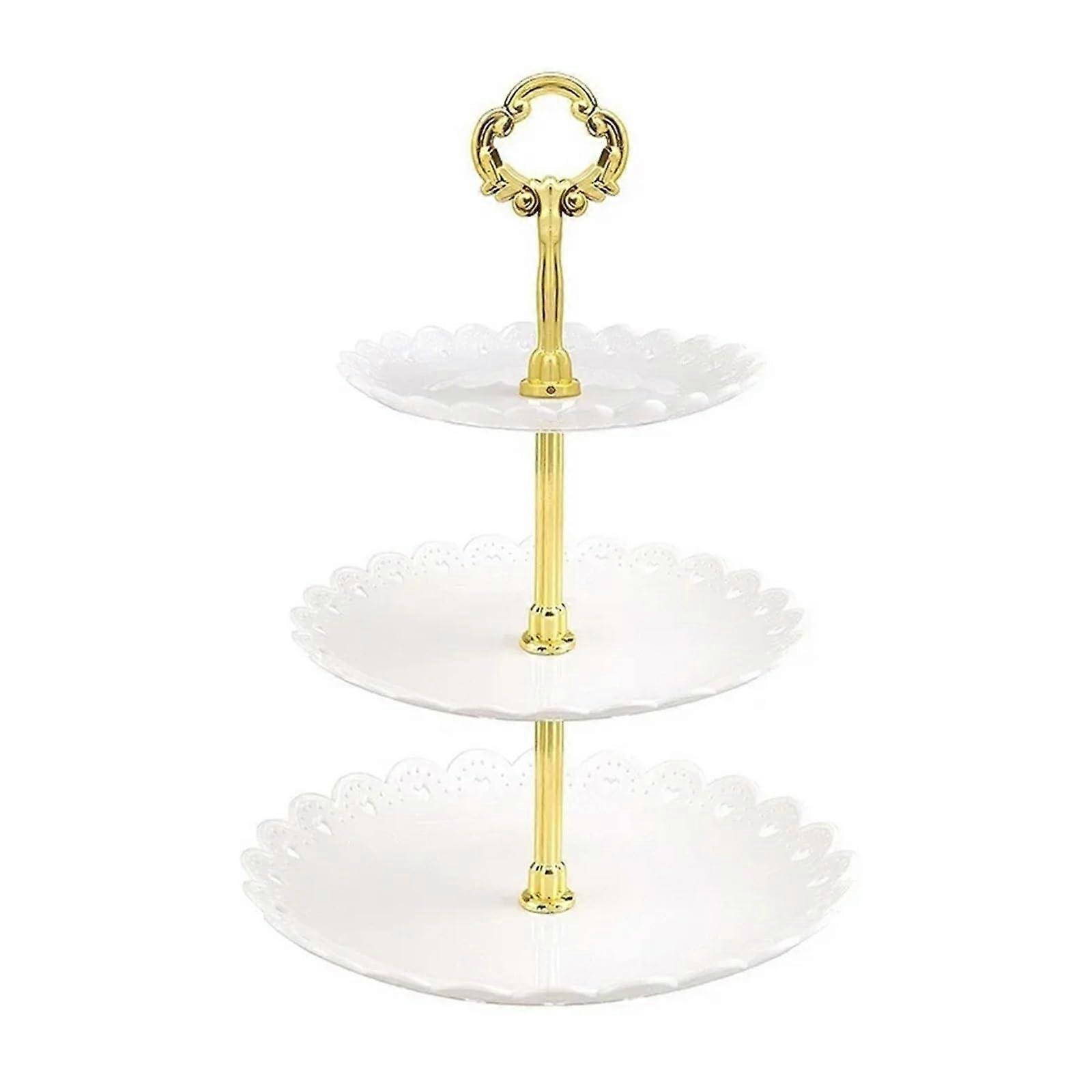 Fruit Trays For Serving 3Layer Cake Stand, Stackable Detachable Cupcake Holder, Fruit Plate Tray Display, White Trumpet