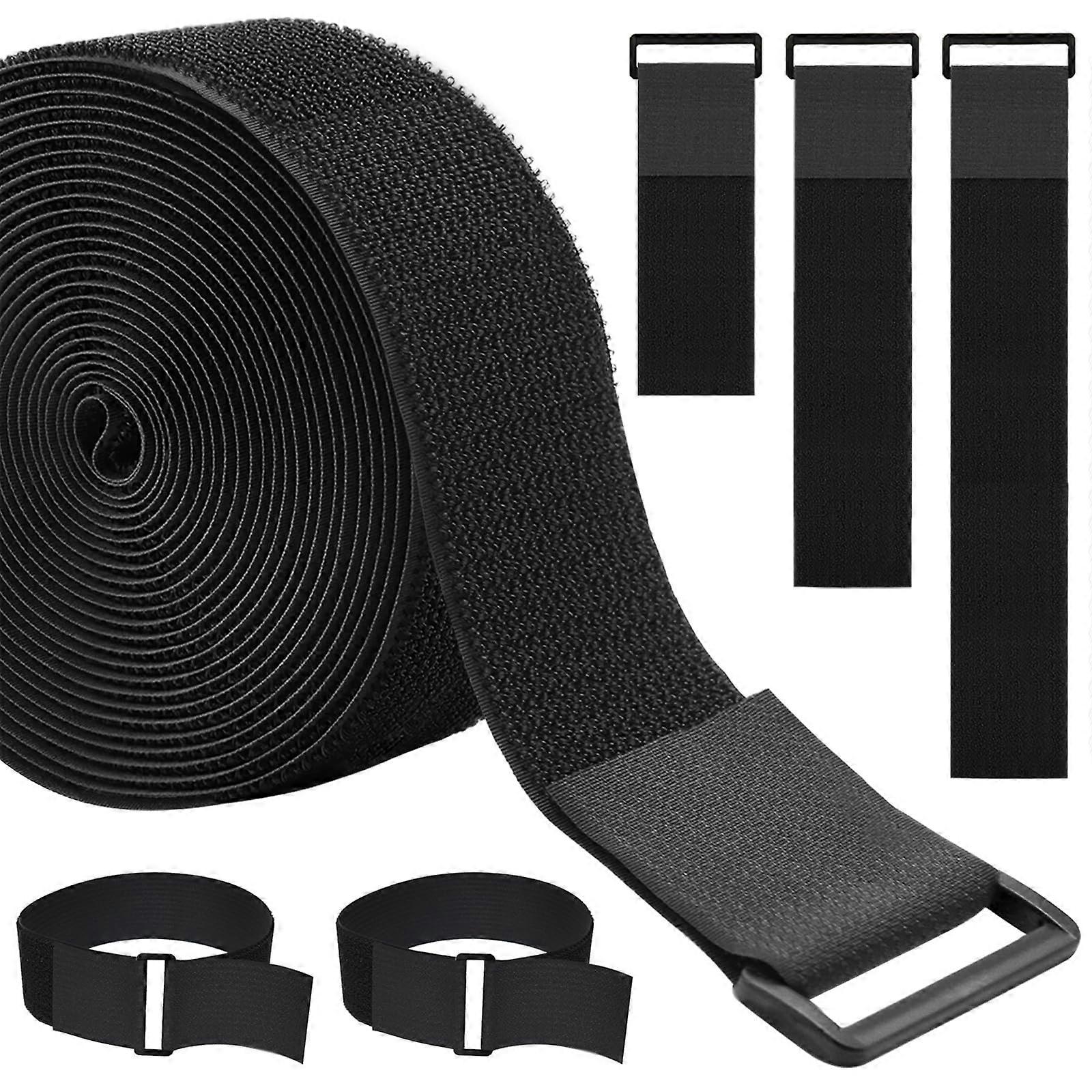 1.5In x 16Ft Cinch Straps Heavy Duty Nylon 20 Buckles Black Hook And Loop Reusable Cable Ties For Organizer Storage