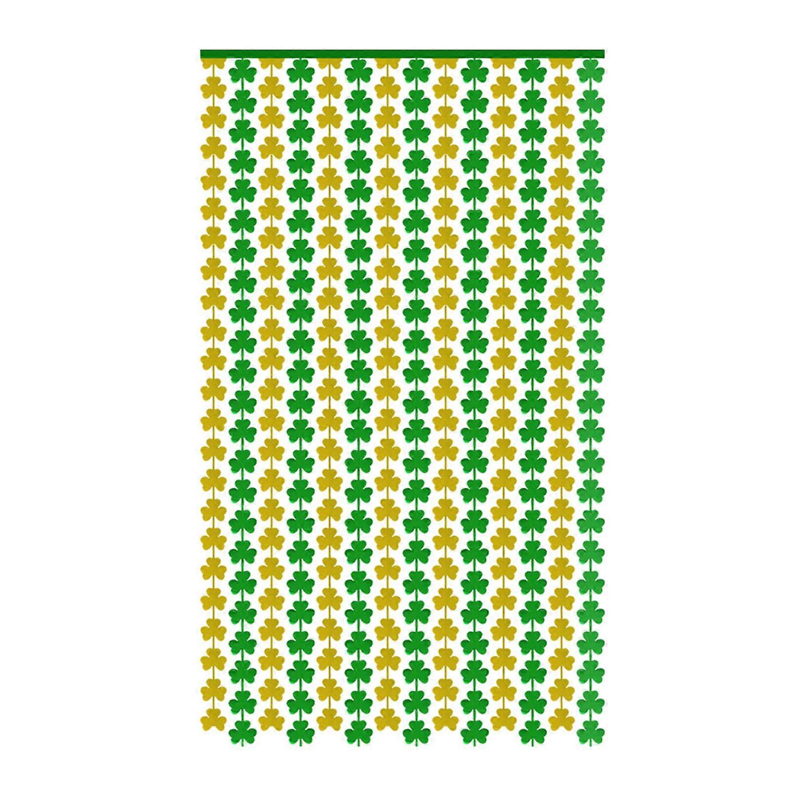 Decorative Shamrocks Tinsel Curtain For Holiday Window Display, Green Metallic Clover Decor, Festival Party Supplies