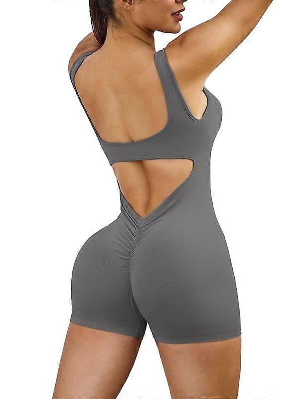 Women's Solid Backless V Back Sports Romper, Casual Sporty Comfy Breathable Sleeveless Bodycon Romper for Yoga Gym Workout, Ladies Sportswea