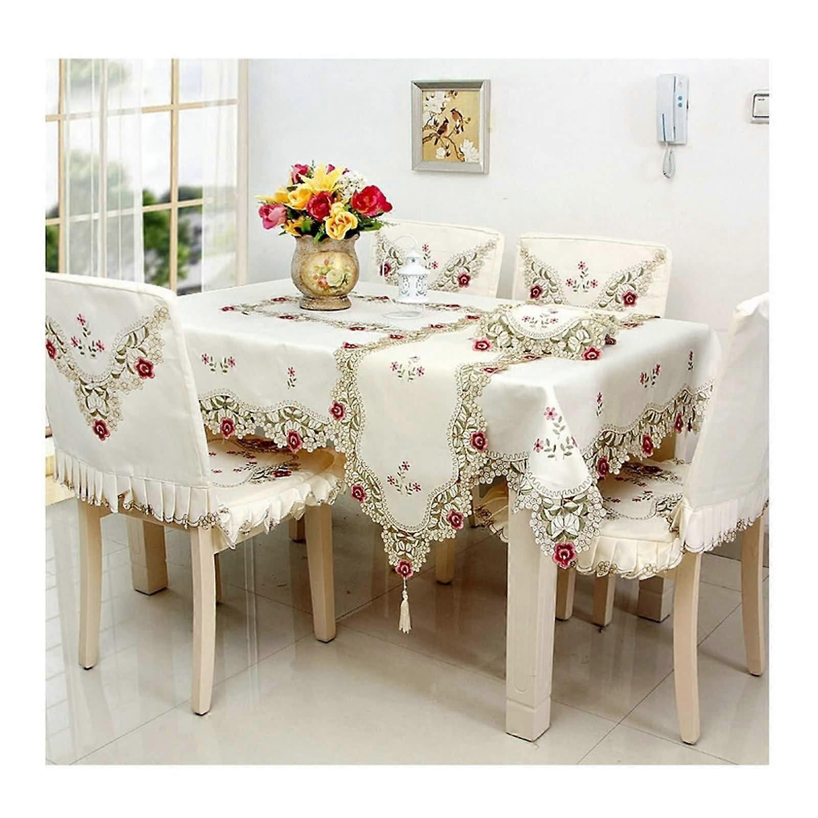 Table Runners 40x290 cm, Cotton Table Runner, Embroidered Floral Pink Tassel Trim