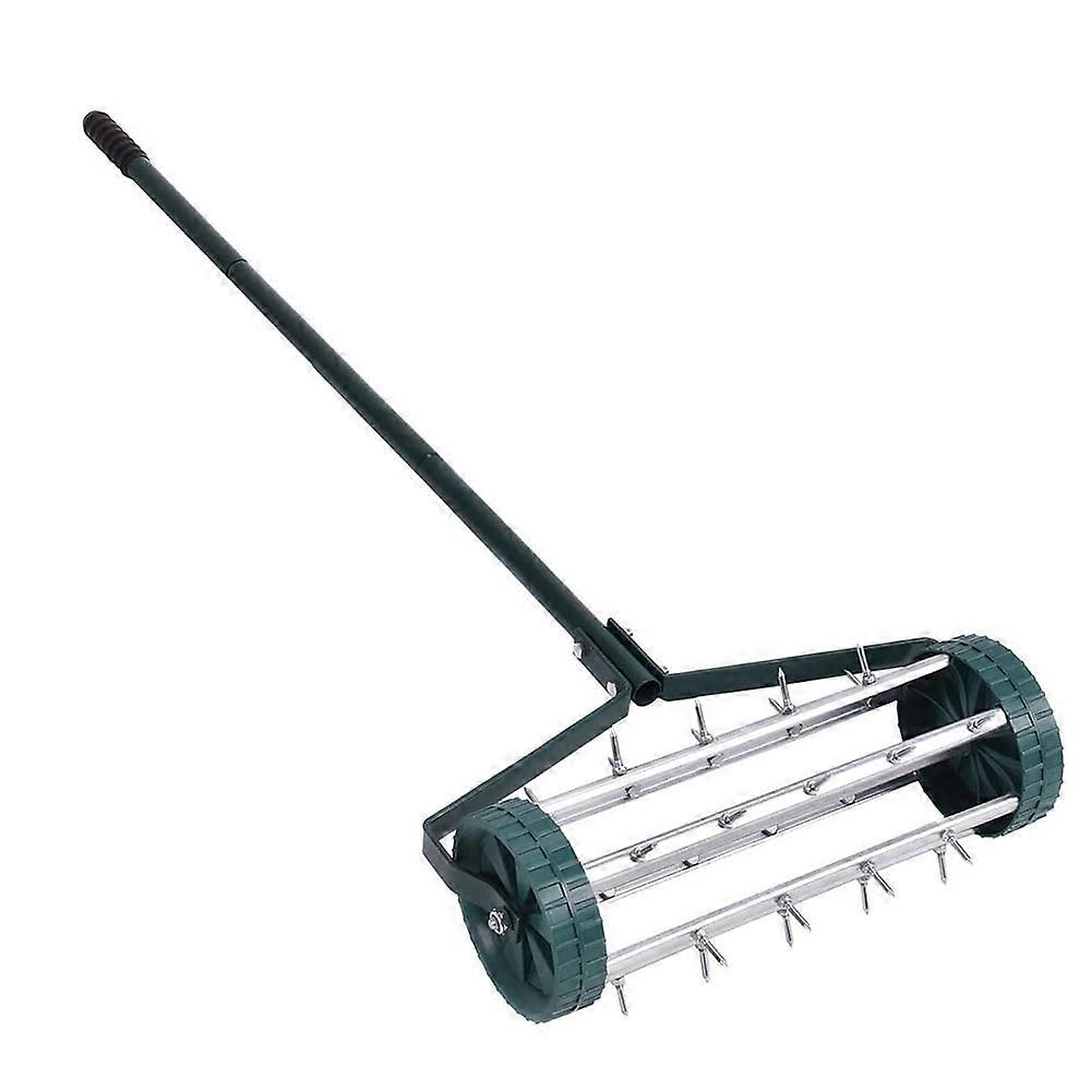 Heavy Duty Rolling Lawn Aerator, 18-inch Rotary Soil Aerator with a Handle for Garden and Yard
