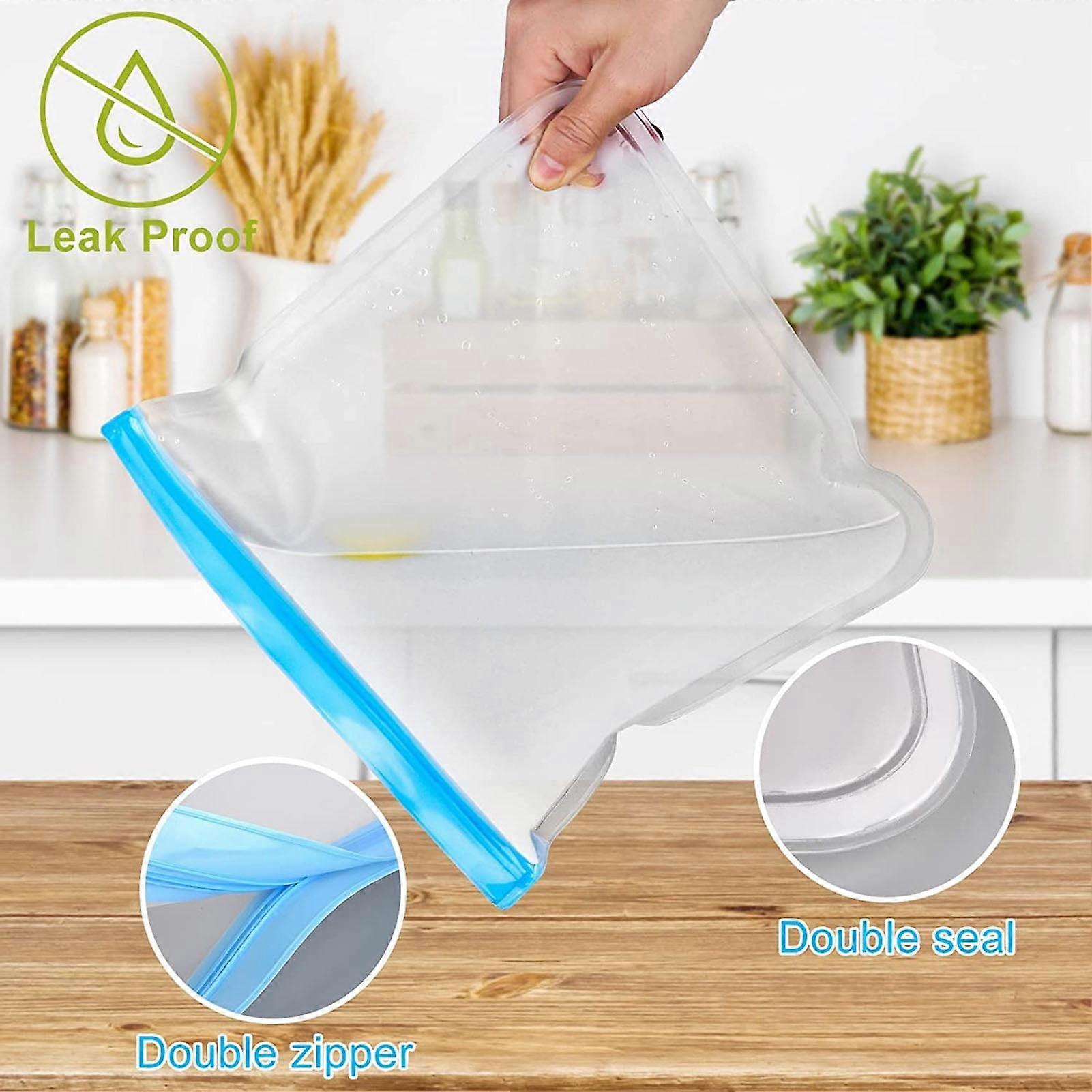 SUSUchens 4Pcs PEVA Food Storage Bags, Reusable Leakproof Dishwasher Safe, Compatible with Fridge & Freezer, Clear Blue Kitchen Organizer