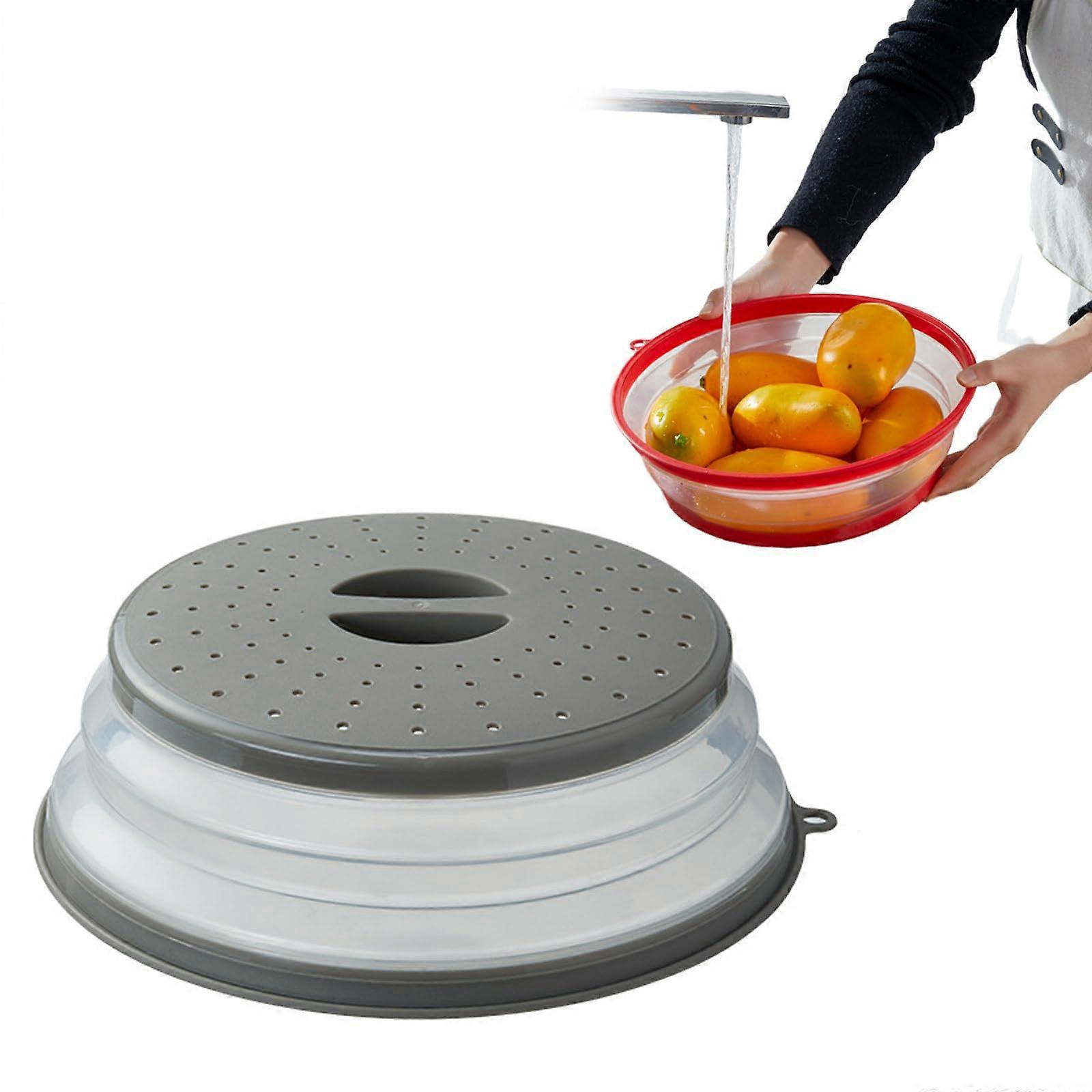 Microwave Splatter Cover Collapsible 10.4In Grey BPA Temperature Resistant Dishwasher Safe Plate Cover