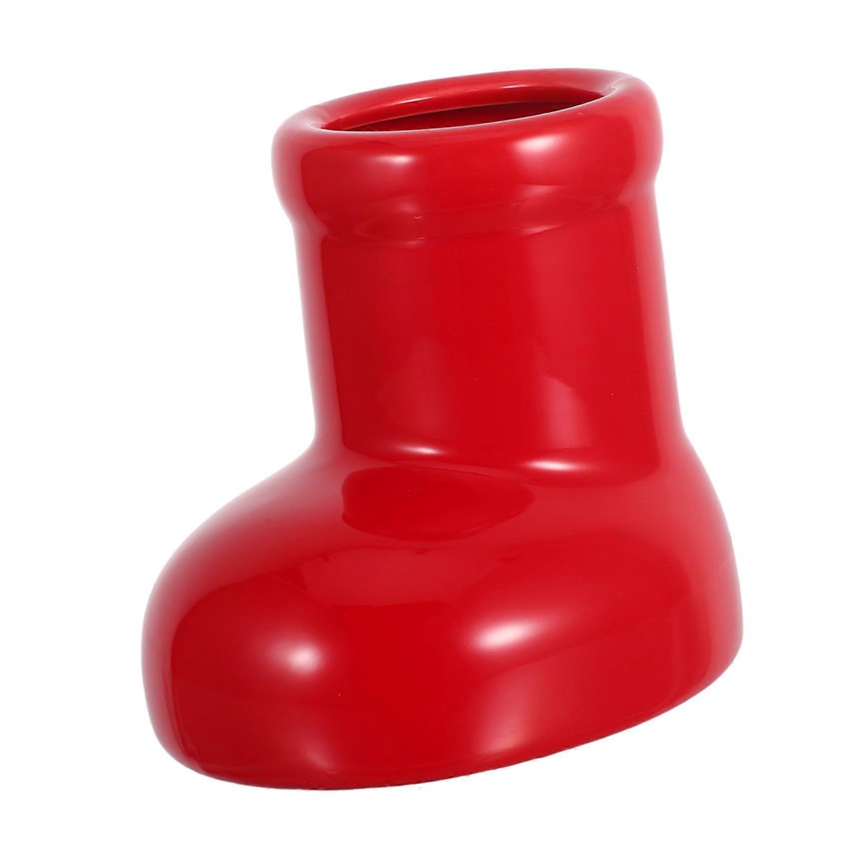 Festive Red Boot Ceramic Vase Christmas Table Centerpiece Flower Holder Living Room Office Decor Sturdy Planter