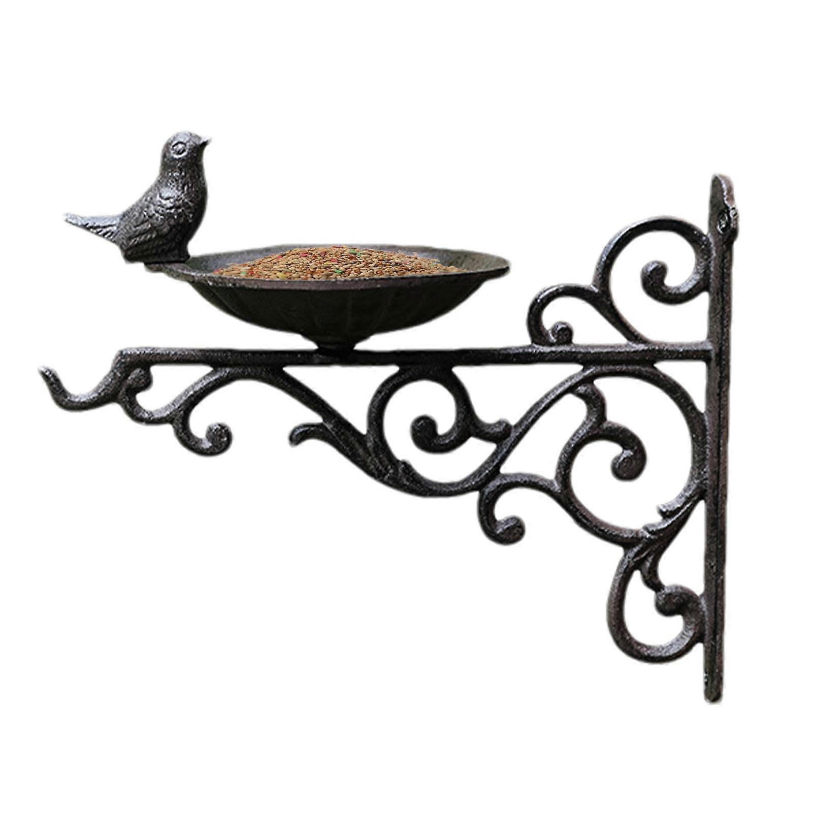 Wall Mounted Bird Feeder Cast Iron With Nuts And Mealworms Water Tray Bracket Included Outdoor Decor Garden Ornament