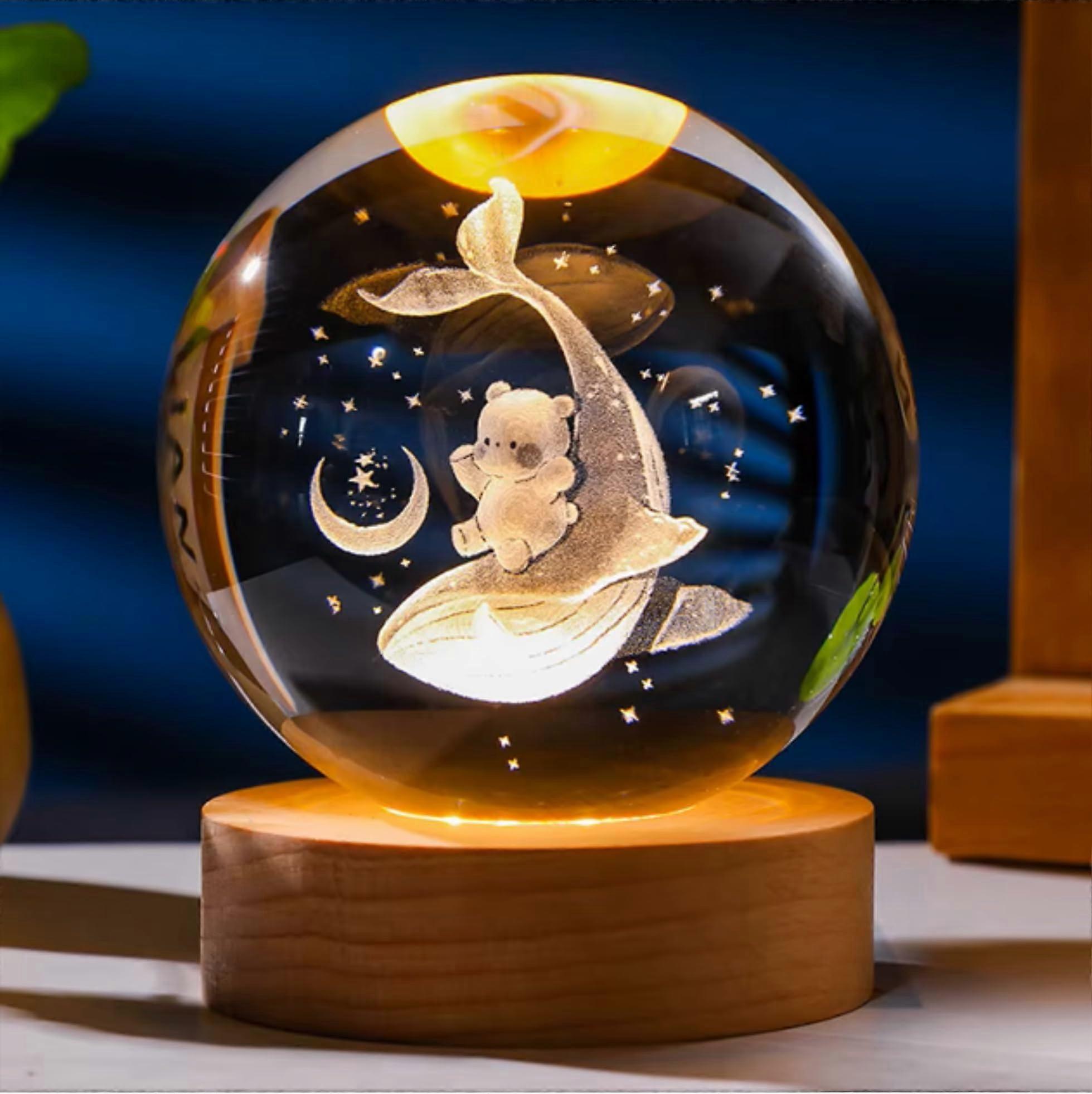 3D Whale & Teddy Bear Crystal Ball Night Light Whale & Teddy Bear Figurine Lamp Decorative Glass Sphere Paperweight