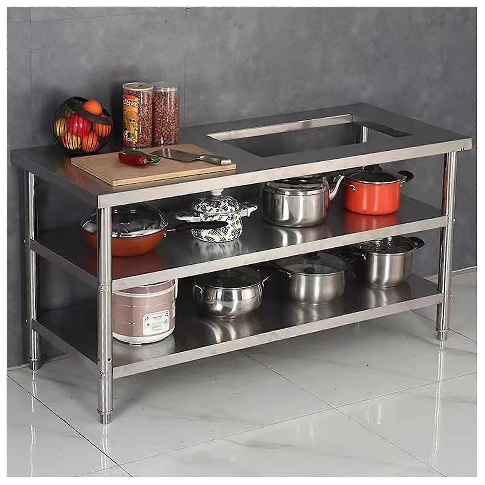 3Tier Workbench Perforated Stainless Steel Work Table Brushed Finish 47.2x23.6x31.5 Triangular Crossbeam Stovetop Compatible