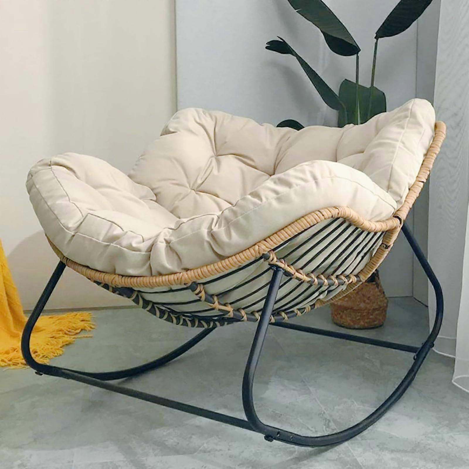 Rocking Chairs for Adults Papasan Rocking Chair 40.9Inch Oversized Rattan Wicker Chair EggShaped Metal Frame RiceWhite