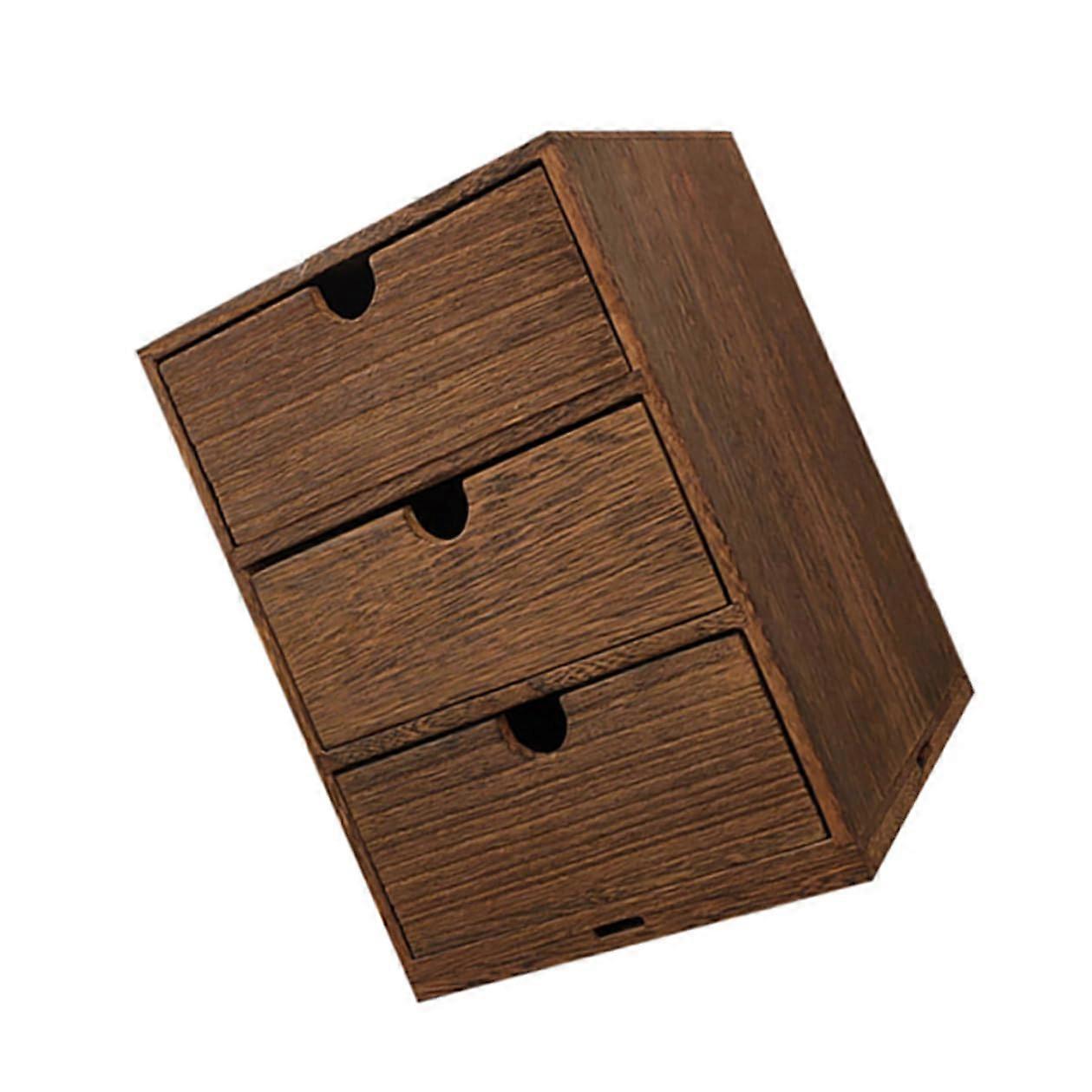 Wooden Multilayer Storage Drawer Box 3Layer Desk Organizer For Home Office Brown Wood Grain Texture Cabinet