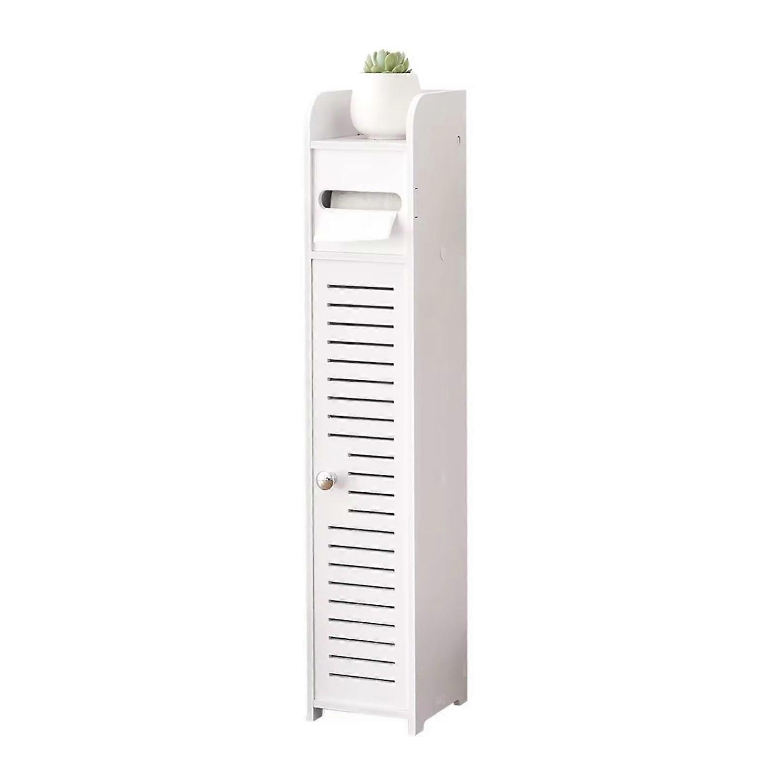 Floor Cabinet White Waterproof Freestanding Slim Bathroom Storage, 15x17x80 cm, Pantry for Toilet Paper and Shampoo