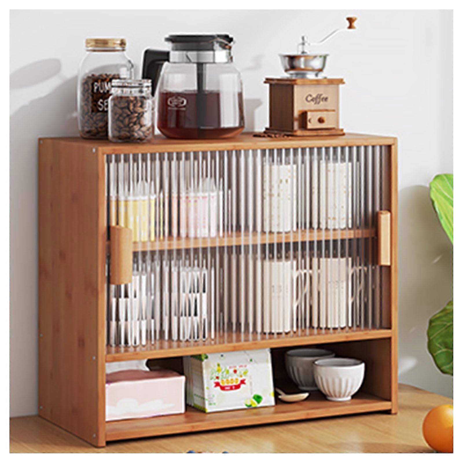 Wooden Storage Cabinet Multi Layer Display Unit For Kitchen Pantry Brown Sliding Glass Door Sideboard 2 Glass Doors