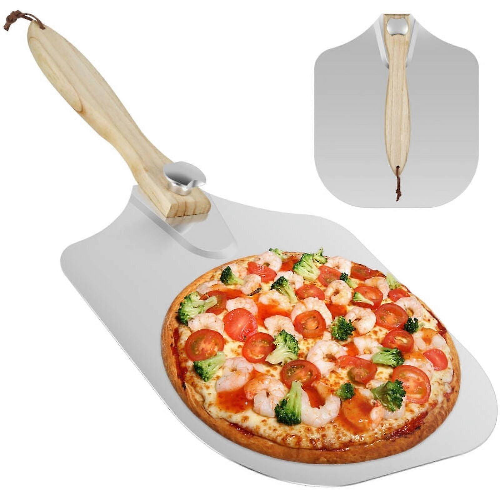 Qenwkxz Aluminum Pizza Peel 23.6"x14" with Folding Wooden Handle, Non-Stick Paddle for Pizza, Cake, Compatible with Home Kitchen Use