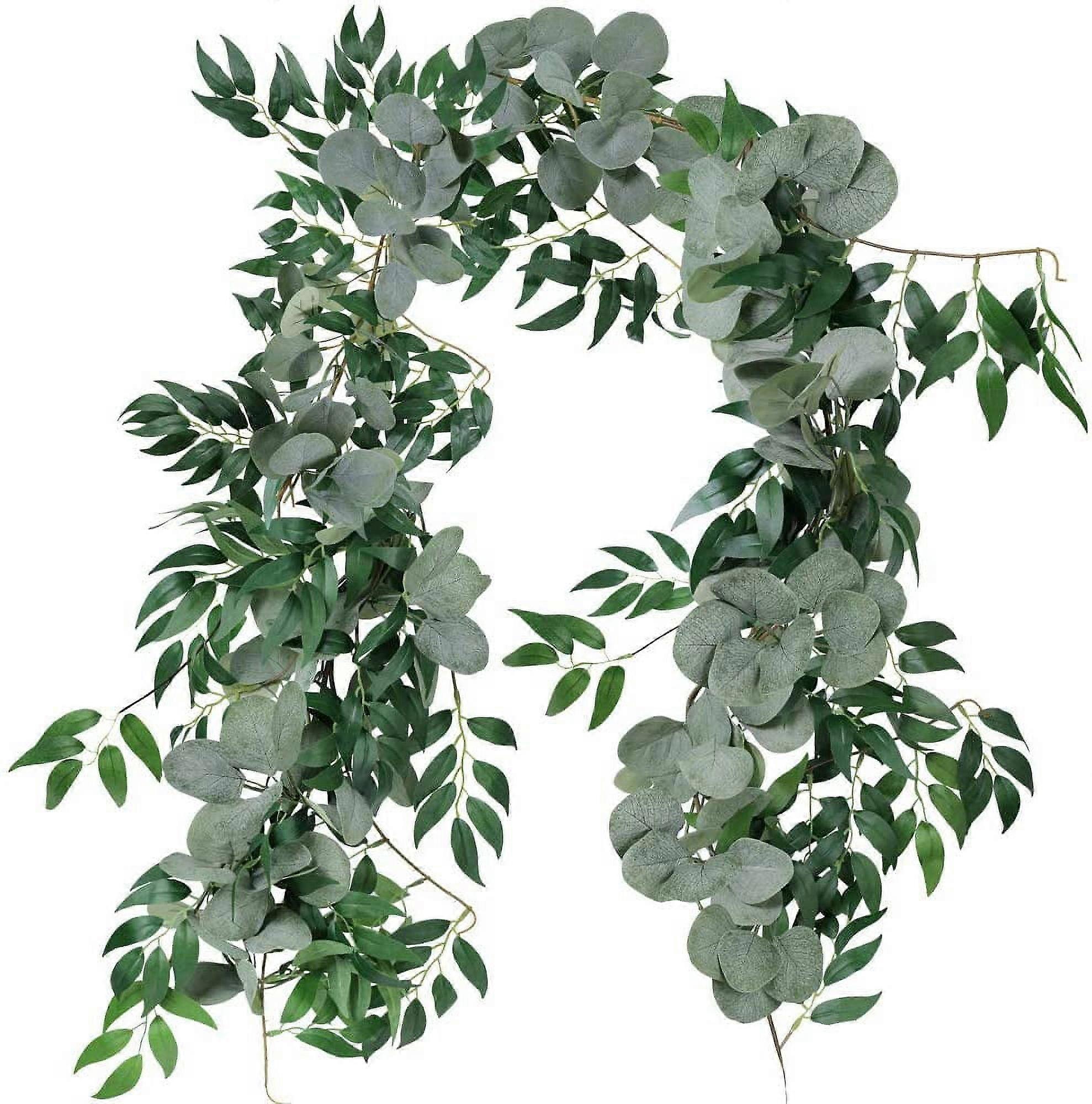 5.5' L Mixed Faux Eucalyptus Garland - Silver Dollar & Willow Vines, Artificial Greenery for Wedding Arch, Swag, Doorways, Indoor Outdoor Decor