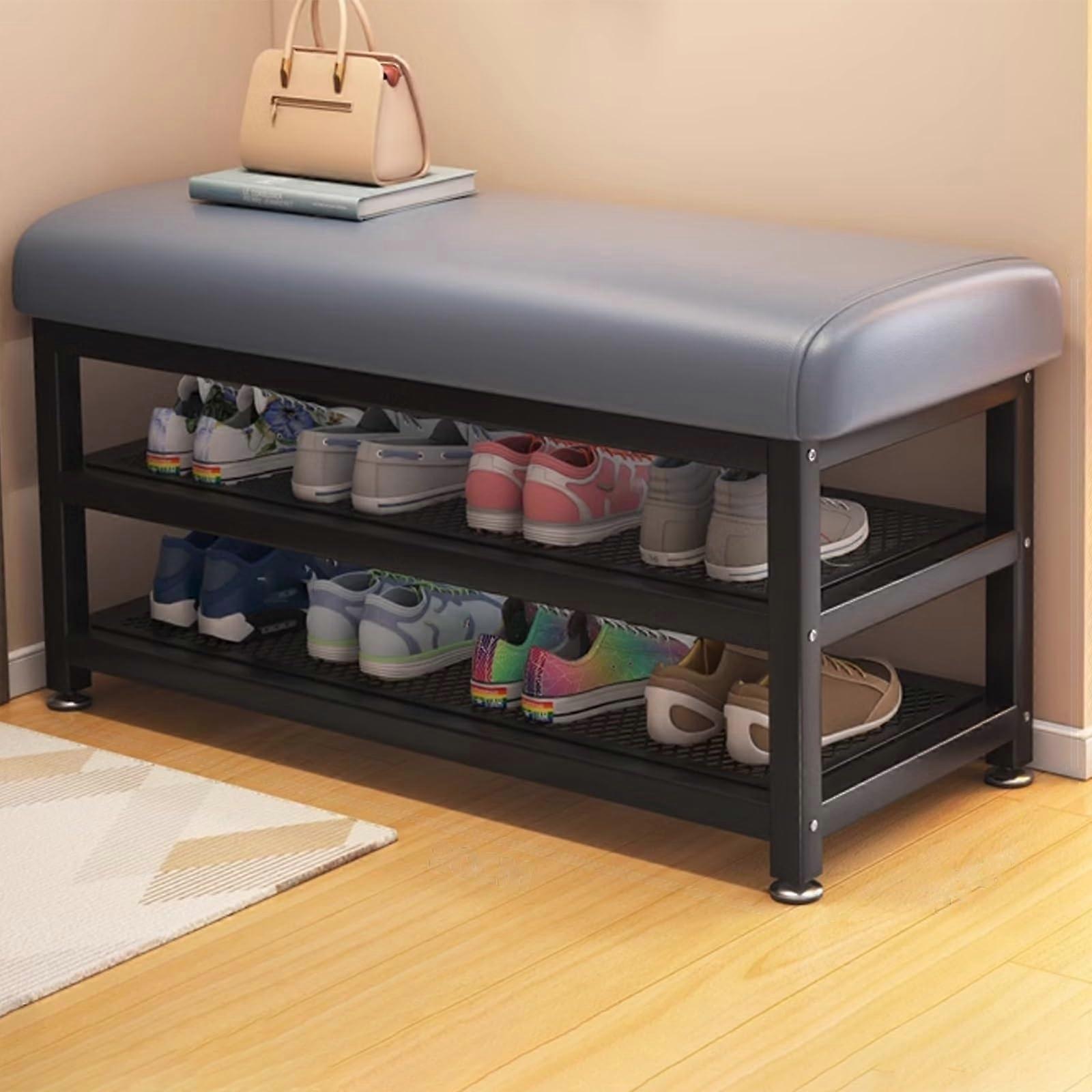 Gray Shoe Storage Bench 60cm Wide Padded Seat Entryway Hallway Living Room Shoe Organizer Furniture