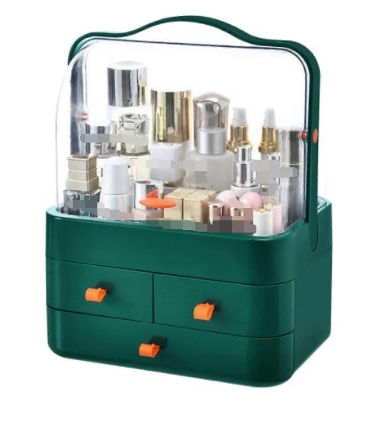 Cosmetic Storage Box for Bedroom and Bathroom, Green Makeup Organizer 26.5 x 18.2 x 34.7 cm for Dresser and Dressing Table