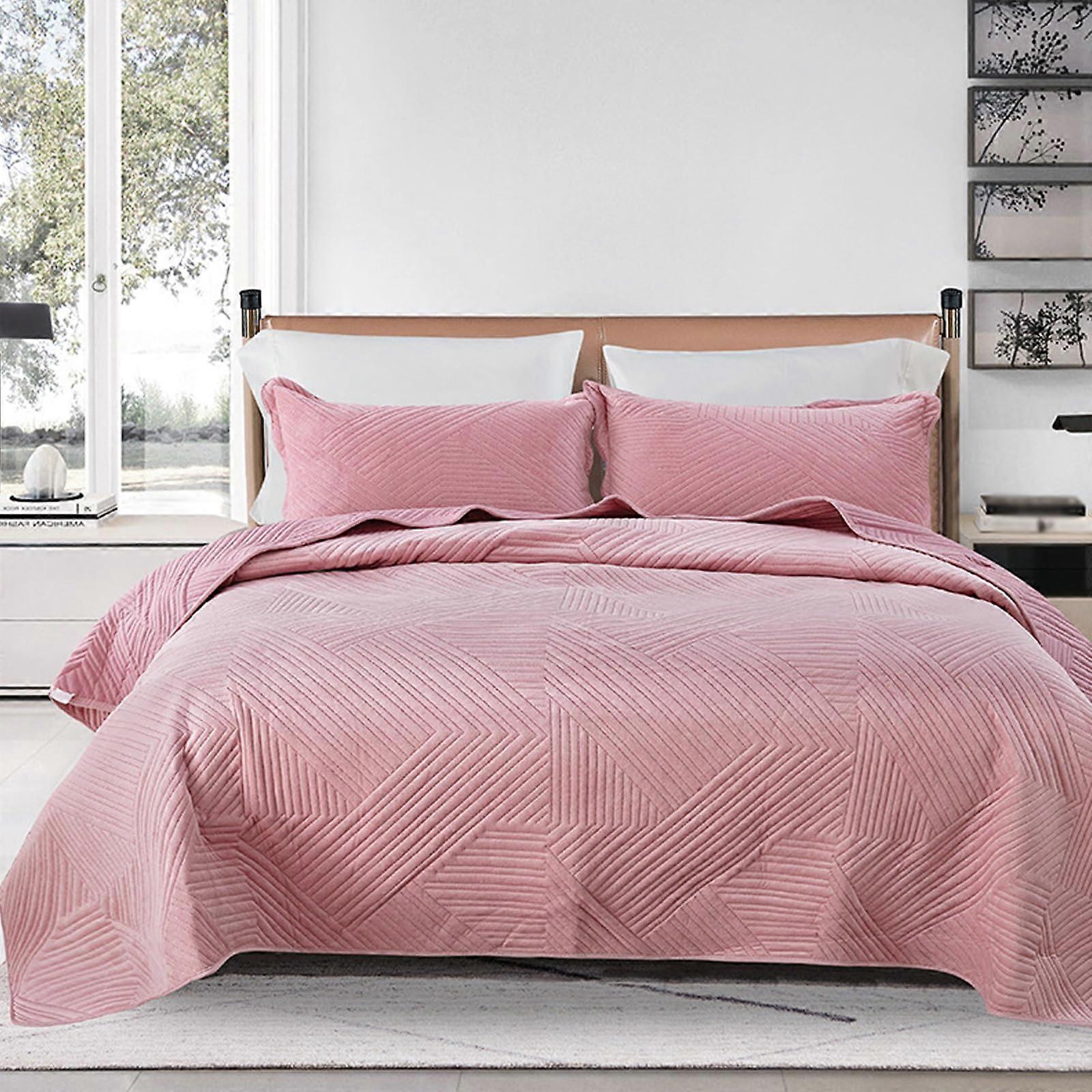 fabrics and construction: The bedspread is made with crystal velvet fabric and cotton filling. The entire filling is secured with neat channel stitching to prevent shifting or clumping. Tight seams and wrapped edges resist washing without unraveling. Oversized fit for larger beds: The bedspread drapes nearly to the floor, creating a graceful edge. No dust ruffle bedskirt is needed, enhancing the bedroom's look. Multifunctional use: Serves as a comforter in spring and autumn, and in summer when used with air conditioning. Also suitable as a decorative layer for your bed or sofa in the living room. Set includes and sizes: 1 bedspread available in 220x240 cm (86.6x94 in) or 240x250 cm (94x98 in), plus 2 pillowcases (50x70 cm / 19.6x27.5 in). Lightweight design adapts to yearround comfort. Ideal as a home furnishing for loved ones, friends, and family.