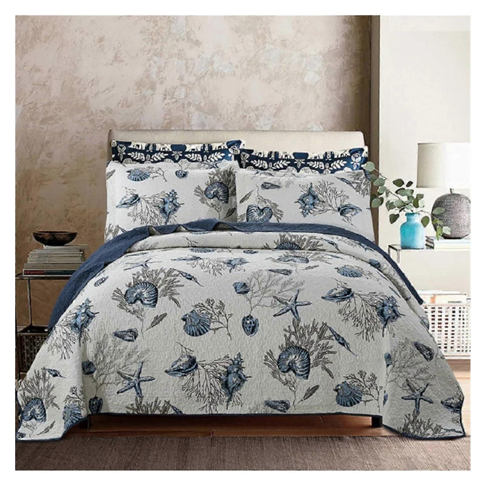 Bed Sheets Set, 3Piece Cotton Bedding, Ocean Style, Queen Size, King 98 X 106 Inches