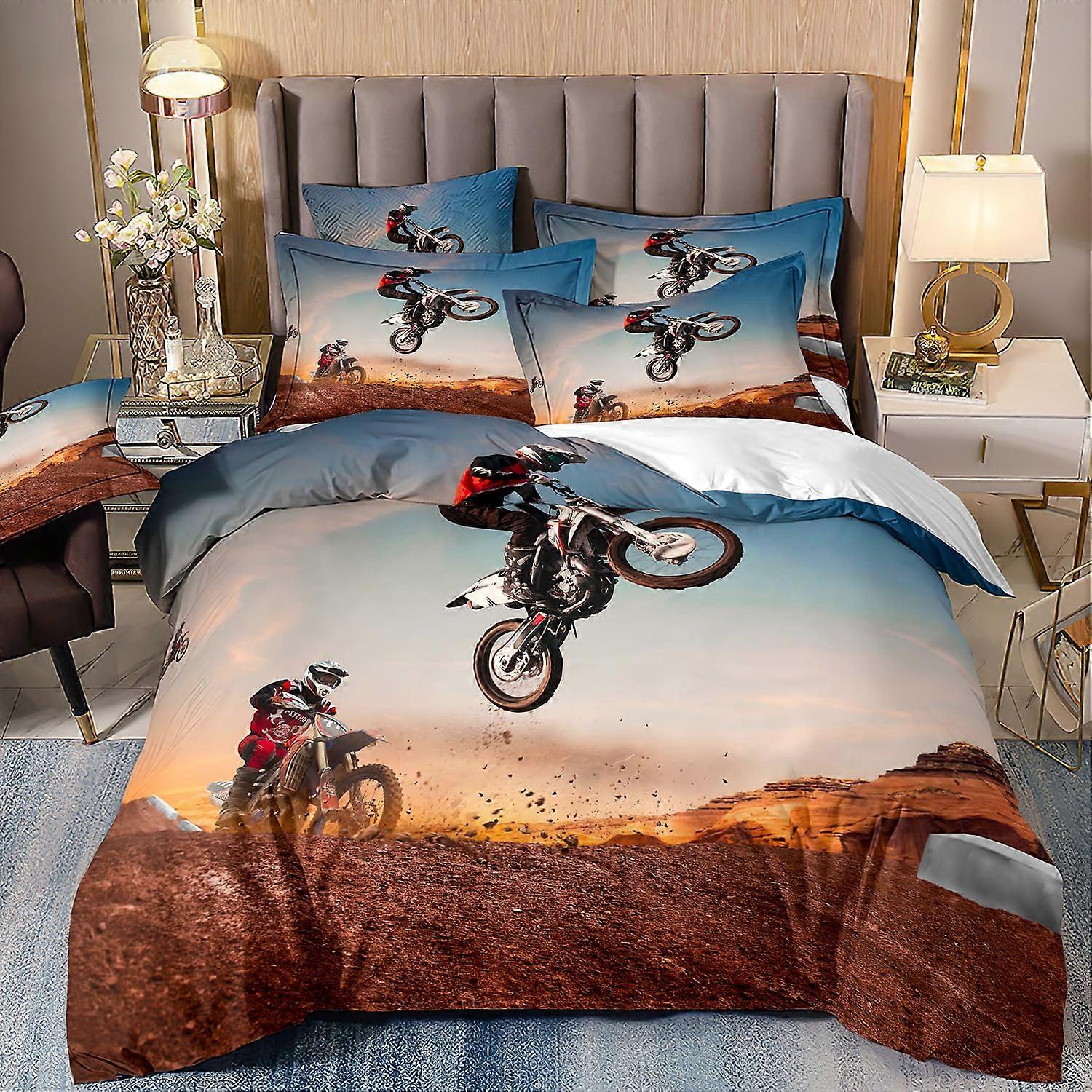 OffRoad Motorcycle Duvet Cover Set 220x230cm For Kids Teens Boys Girls Motorcycle Enthusiast Bedding