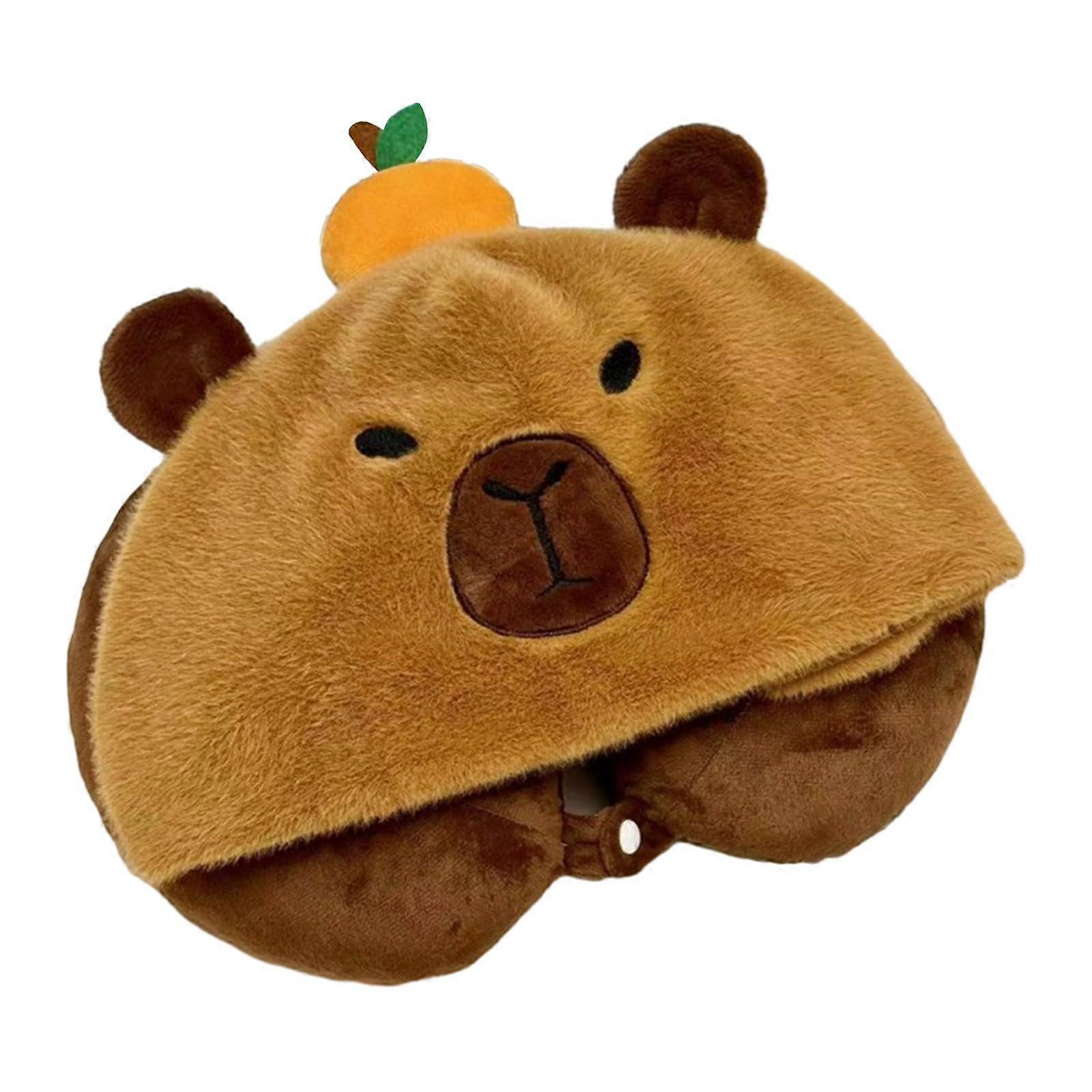 Lovely Plush Pillow With Hat Cartoon Animal Neck Pillow For Adults And Children Hooded Travel Pillow Soft Plush Material