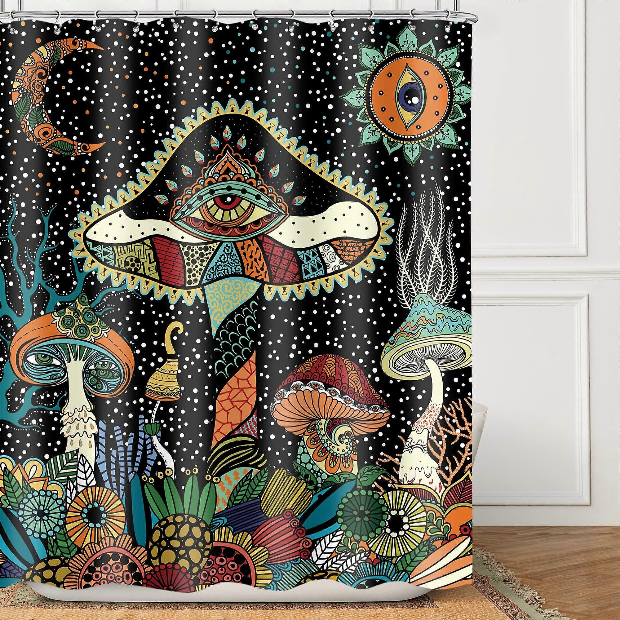 Mushroom Trippy Abstract Mysterious Gothic Sun Shower Curtain 60x72 Inch Waterproof Fabric With 12 Plastic Hooks Panel