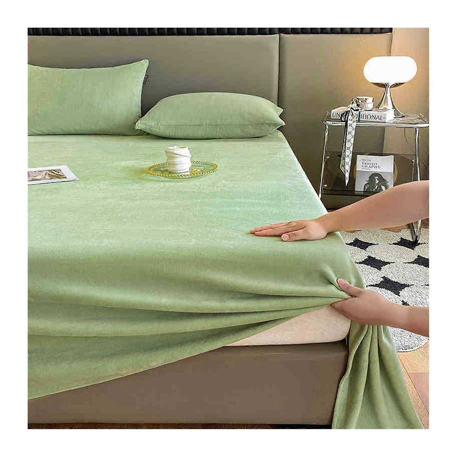 Velvet Bedding Flat Sheet Twin Full Queen King Size 1 Pack Green 160x230cm Plush Flannel