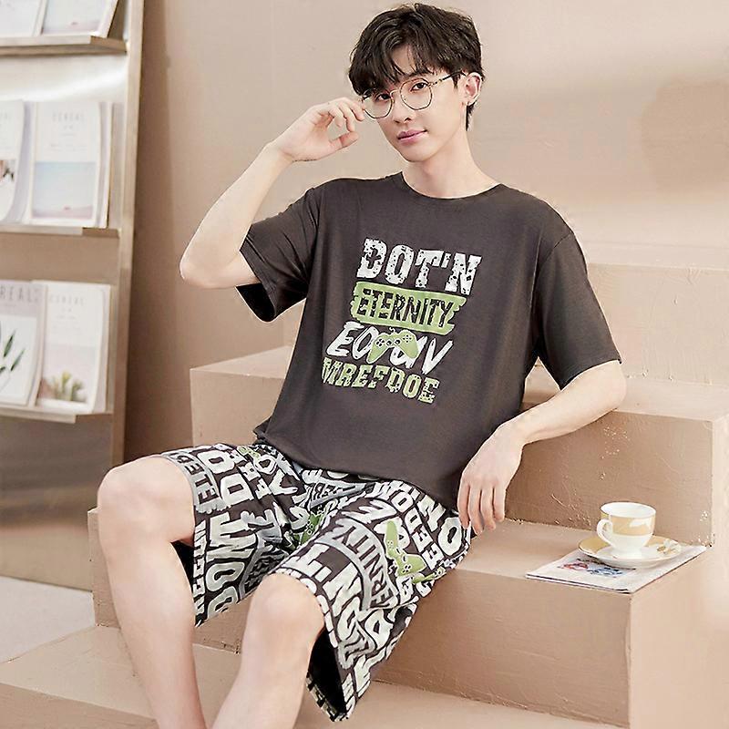 Men's summer pajamas modal cool thin style teenagers students boys summer can wear outdoor home clothes suit