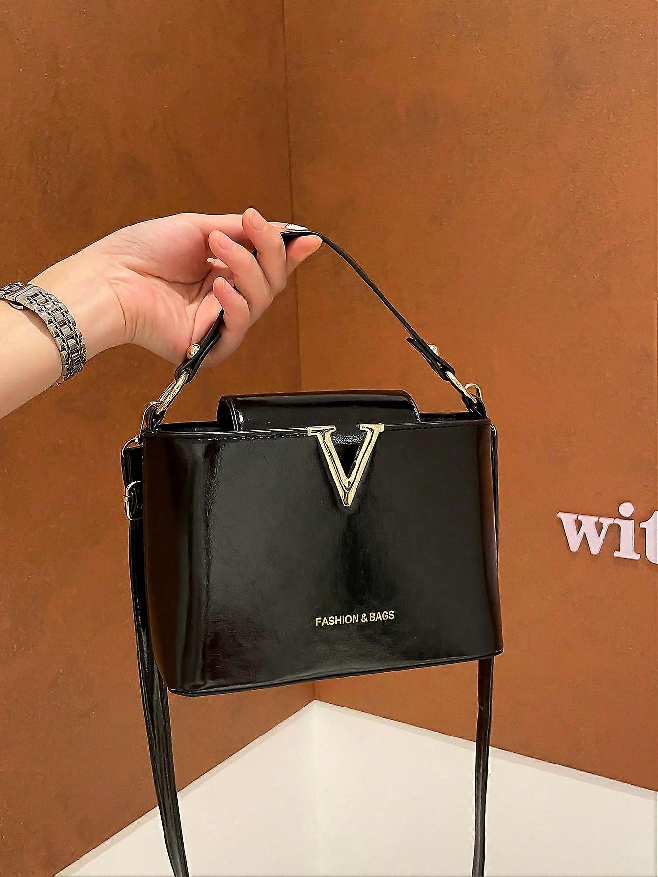 1pc Mini Letter Metal Decor PU Handbag With Magnetic Closure, Fashionable For Women, Suitable For Everyday Use In Autumn/Winter