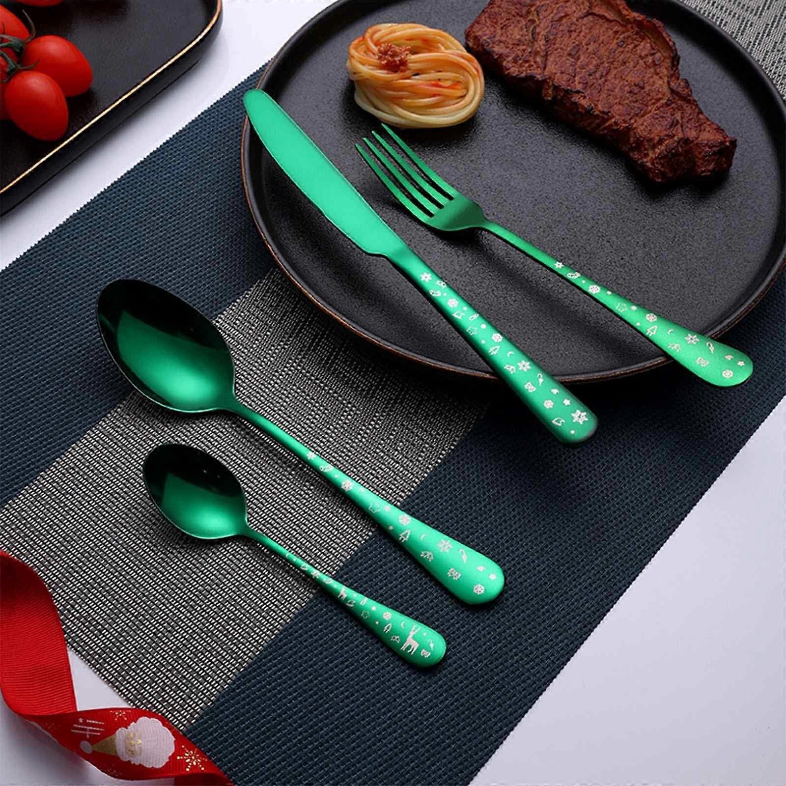 Kayannuo Christmas Gifts Clearance Christmas Series Cutlery Stainless Steel Knife Fork And Spoon 4 Piece Set Christmas Dinner Sets