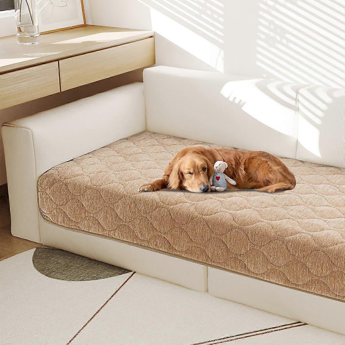 Couch Cover Chenille Pet Fuzzy Sofa Covers For Cushion Couch Anti Slip Washable With Strap Soft Couch Protector Cover For Dogs Cats Kids,khaki