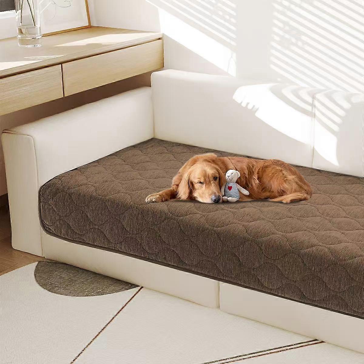 Couch Cover Chenille Pet Fuzzy Sofa Covers For Cushion Couch Anti Slip Washable With Strap Soft Couch Protector Cover For Dogs Cats Kids,brown