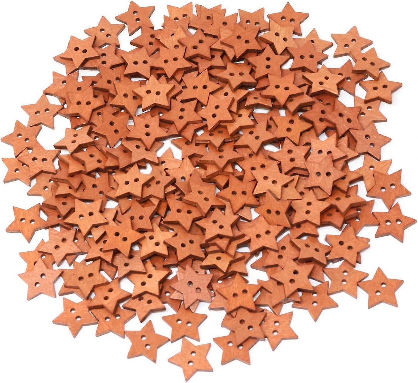 200PCS Wooden Star Buttons 2 Holes, Antique Brown Sewing Buttons Compatible with Crafts, Skirts, Gloves, Sweaters, Hats, Scarves