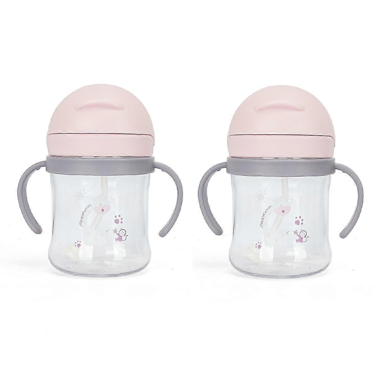 1/2pcs 250ml Pink Baby Drinking Cup Feeding Bottle With Straw Gravity Ball Wide Caliber Drinking Milk Water Bottle With Handle