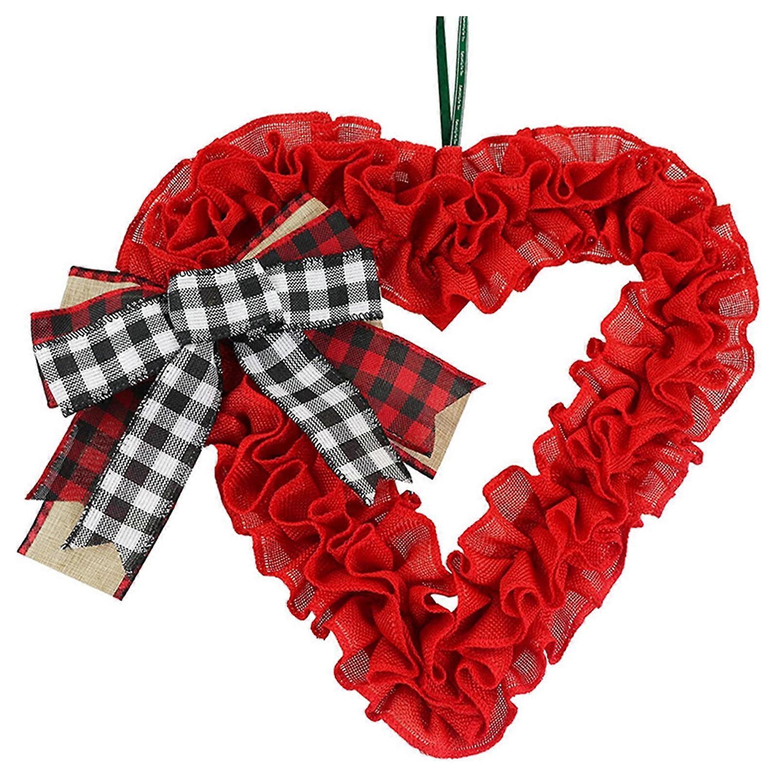 14 Inch Valentines Day Wreath Decorations Heart Shaped Wreath with Plaid Bows for Front Door Valentines Day Decorations Party Supplie Feature: Quantity: 1 pcs Material:Cloth Colour:Red Product Size:40x37x2cm/15.74x14.56x0.78in Package size:33x33x5cm/12.99x12.99x1.96in Net weight:130g/0.28lb Gross weight:370g/0.81lb Descrition: DESIGN - Our Valentines day heart shaped wreath decorated, elegant and delicate, never make your home look boring, this unique design is suitable for year-round decoration. LIGHT BUT - Made of natural sackcloth fabrics, soft sense, embellished with a sturdy feel base on the back. Lightweight and easy for you to hang it anywhere. Quality sackcloth heart shaped wreath with check bows, add a natural & festive vibe to your holiday party decor. SIZE - The Valentines wreath measures 14.57x15.75inch, there is a lanyard on the top, it can be perfectly hung on your front door, wall, window and any place you want to decorate, adding romantic and warm ambiance to your home. VARIOUS SITUATION- This red sackcloth wreath ornament decorated with classic plaid bows, very suitable for various ocassions, create festive and romantic ambiance for Valentine's Day, Christmas, weddings and wedding anniversary, etc. A MUST HAVE FOR VALENTINES DAY - Ideal Valentines day decorations for indoor outdoor. Can also be used as a Valentine's Day gift to your family or mates. Using this unique wreath decor at home or holiday party will get more joys. Package Content: 1 x Wreath Excellent Material: These ornaments are made of new and excellent quality,excellent and great quality,will last for years Valentine decorations and holiday decorations. Wonderful Holiday Decorations: The ornaments lots of different styles pattern,which can add the festive ambience and make your Valentine's party memorable. Wide Application: Great gift for your holiday decoration.Ideal for outdoor,home,party,yard,garden,lawns,patio,porch decoration,and more. Valentine's Gifts: All these Valentine decorations are also wonderful gifts for your children, family and friend. They can make springtime village scenes or mini gardens. After Service: We appreciate your trusts and want to make sure that everything works for you. If there is any problem with our ornaments, please contacts our customer service, we will treat it sincerely.