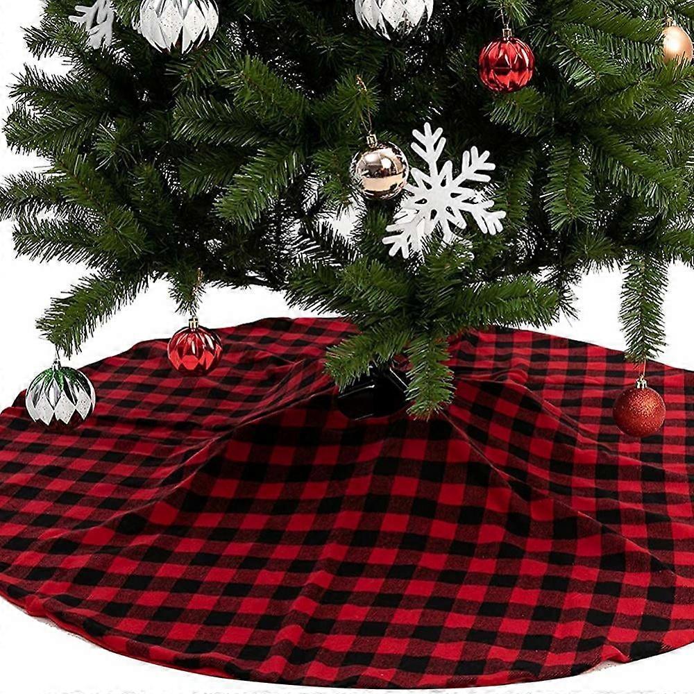 Ardorlove Red Buffalo Plaid Christmas Tree Skirt, 36 in, Faux Fur, Holiday Decoration