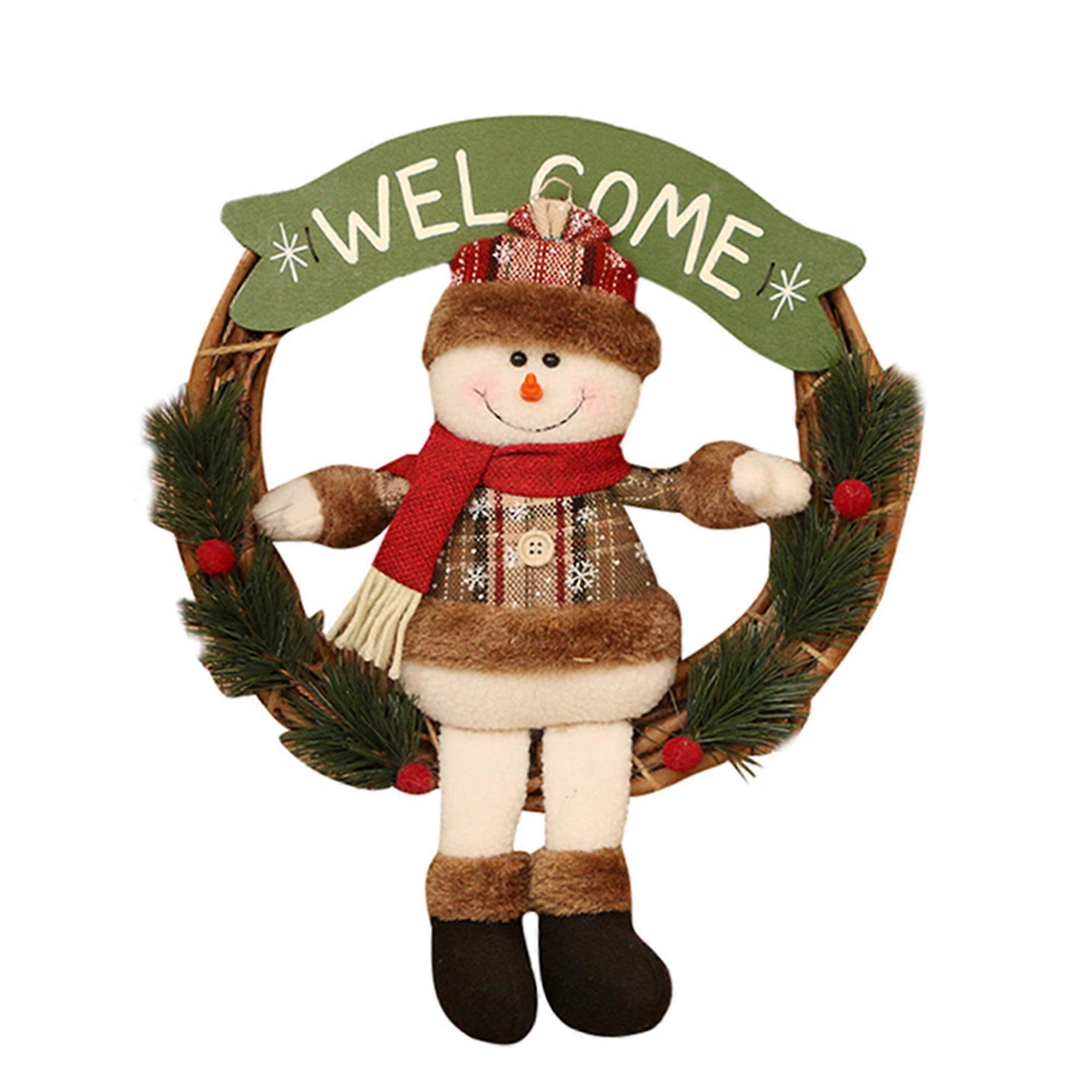 wsevypo Festive Cartoon Snowman Santa Elk Doll Wreath for Front Door