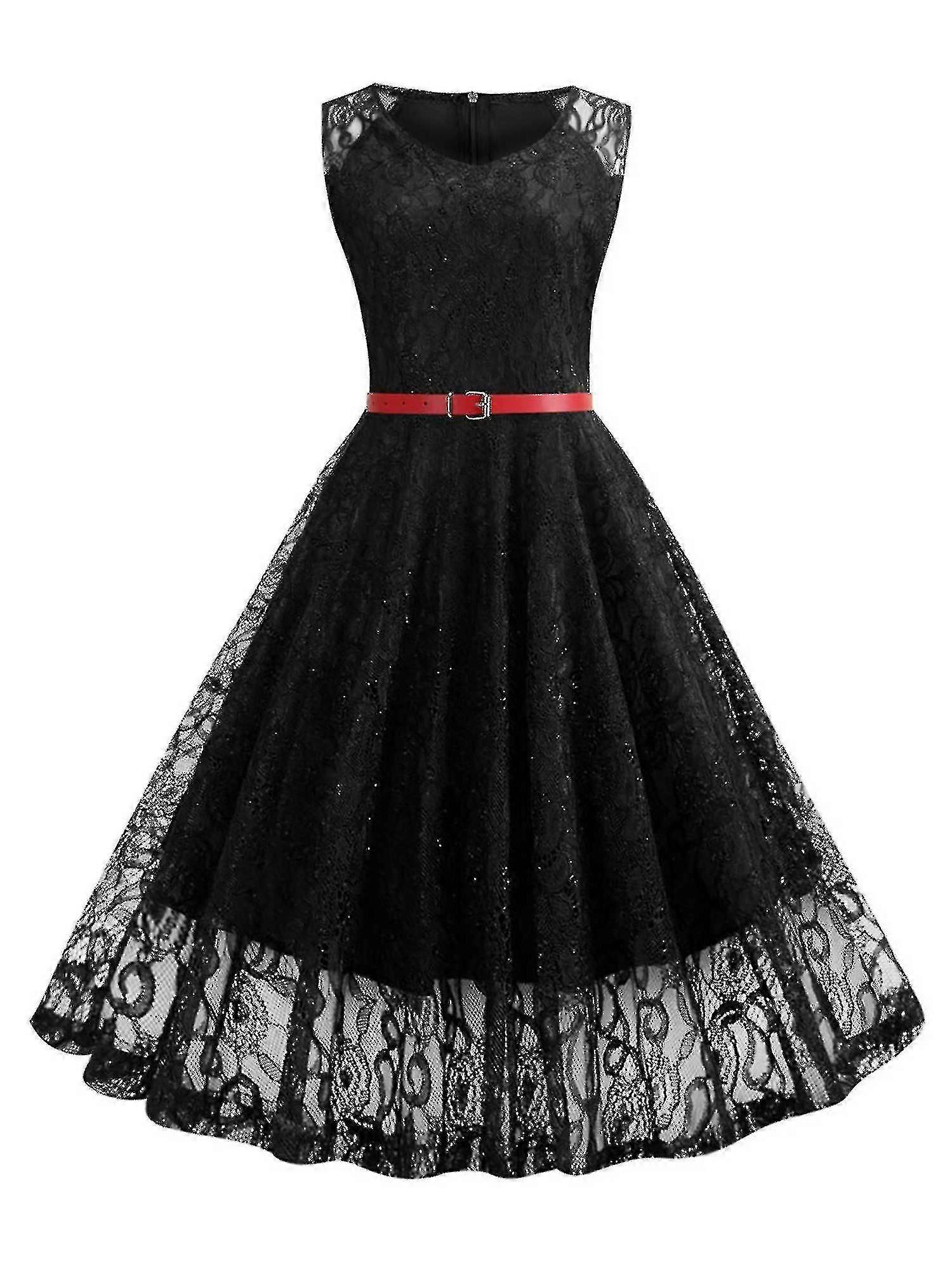 Women's Vintage Lace Rockabilly Midi Swing Dress for 1950s 1960s Theme Parties and Events