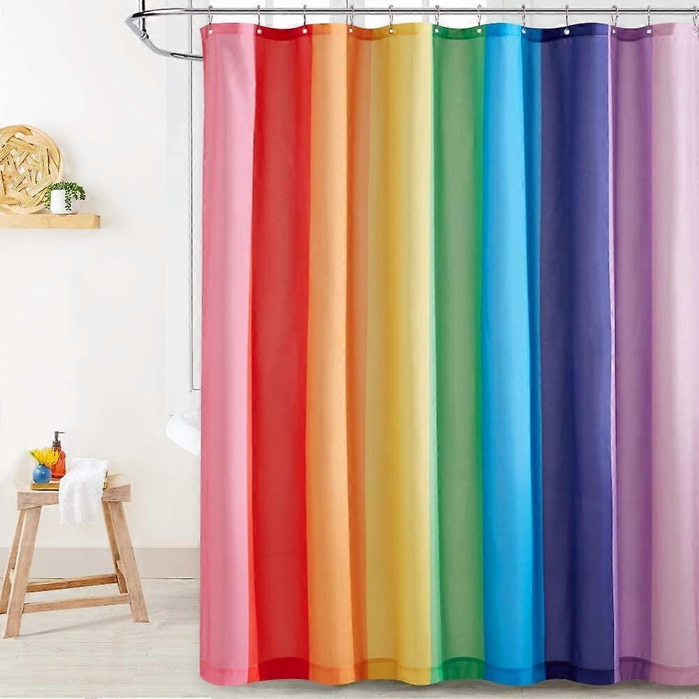 Farmhouse Shower Curtain 72x72 Rainbow Stripe Boho Waterproof Washable for Bathroom Bathtub Camper Backdrop, Hooks Included