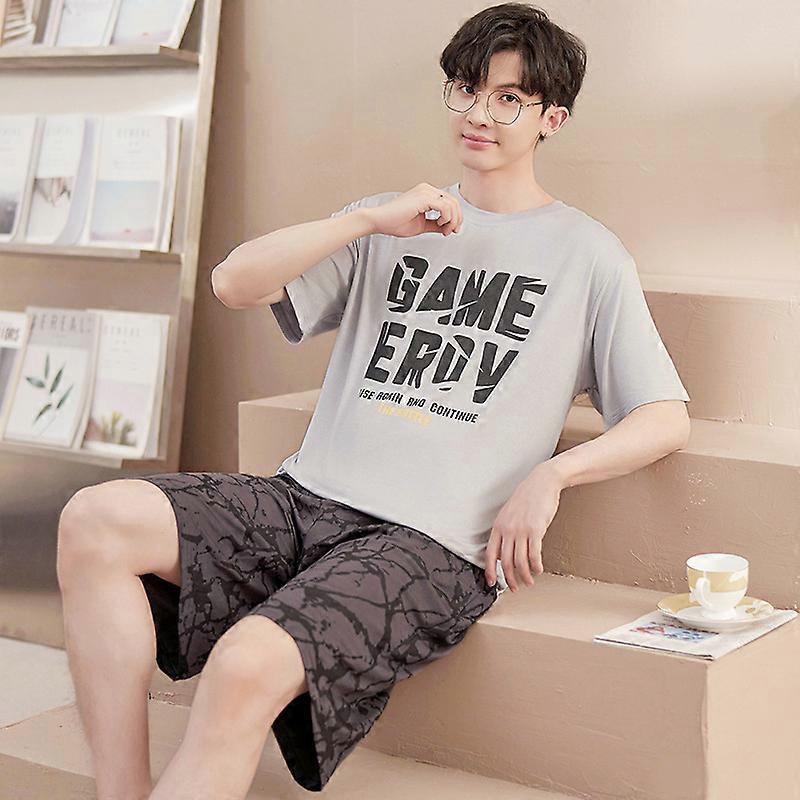Modal men's pajamas summer short-sleeved shorts thin casual men's summer ice silk home clothes boys suit