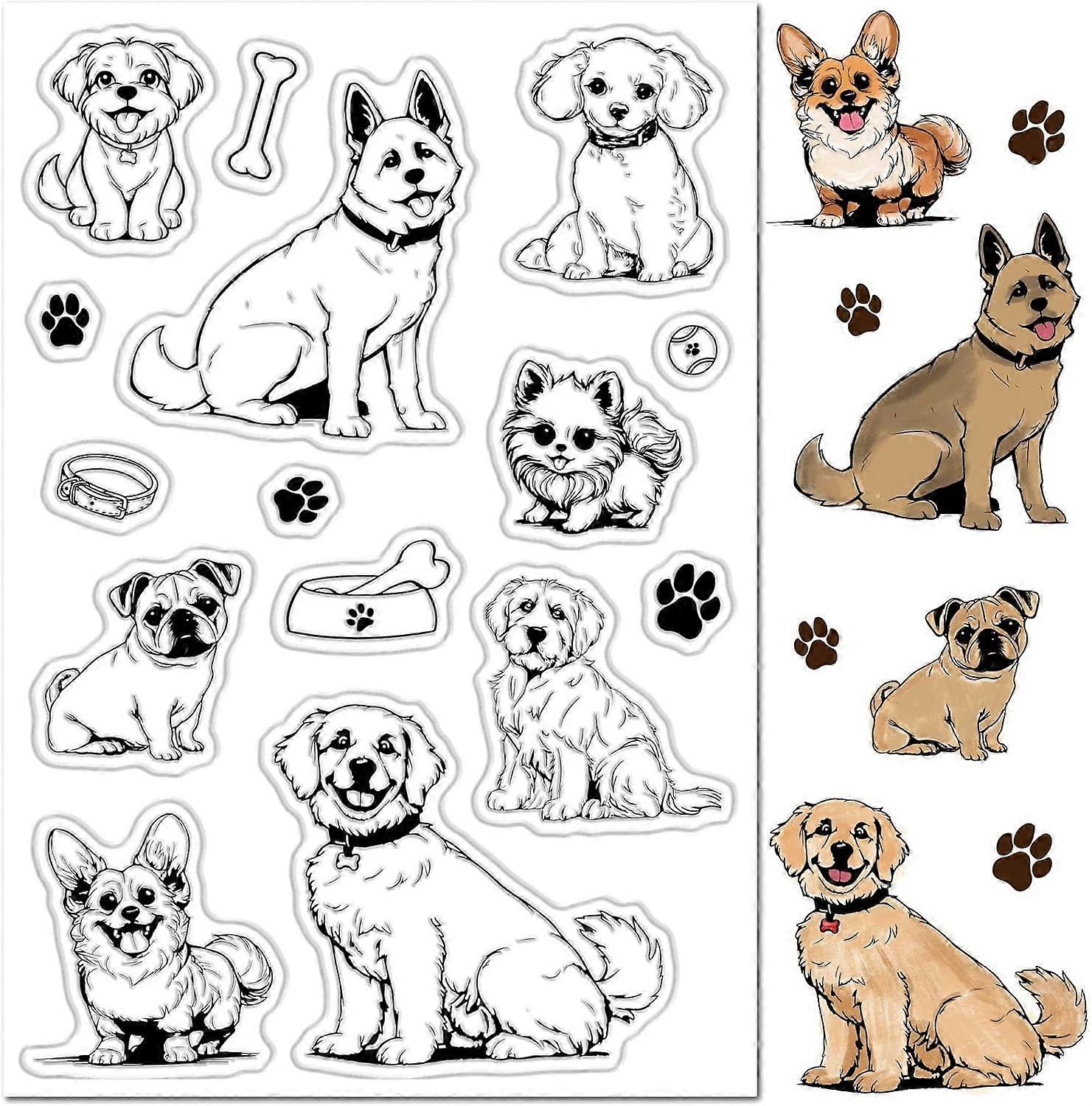 Cute Dog Clear Rubber Stamps, Compatible with DIY Scrapbooking, Journaling, Card Making, Photo Album Decor, Cartoon Paw Print Puppy Bone Vintage