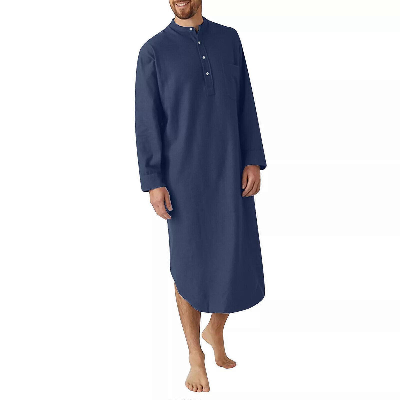 Men's Long Sleeve Sleep Shirts Nightshirts Bathrobe Night Pajamas Robe Dress Top