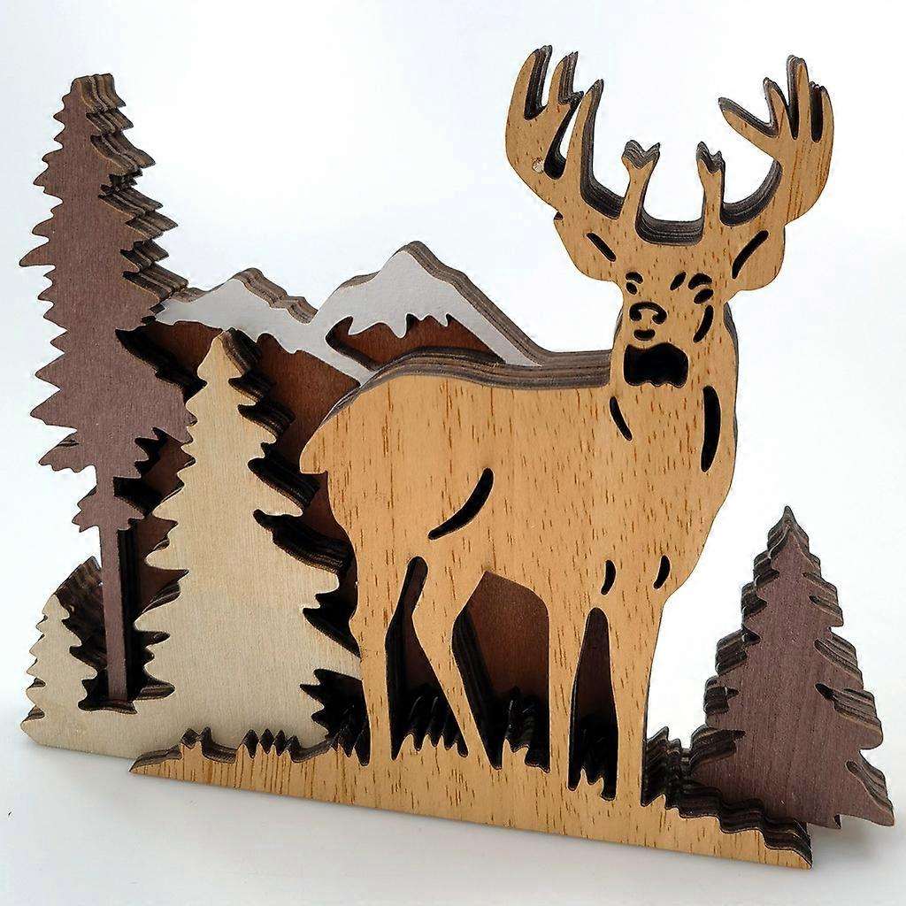 New North American forest wood carving landscape creative home deer wooden multi-layer crafts ornaments