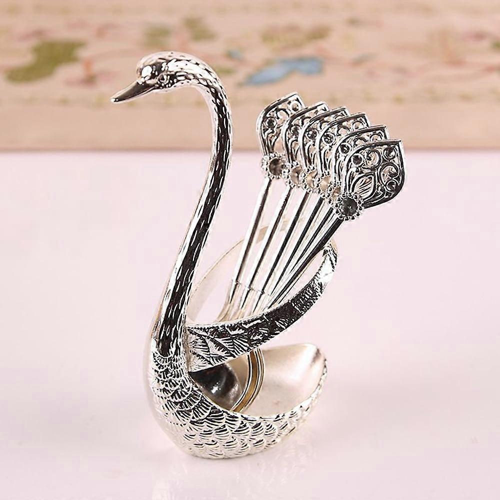 6pcs Teaspoon Dessert Spoon Metal Spoon Set Swan Shape Stand Holiday Christmas Tableware Gift
